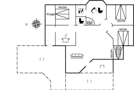 Der er i alt 3 soveværelser. Sovepladserne fordeler sig på: 6 sovepladser i dobbeltsenge. 2 sovepladser i alkove. Derudover er der 1 stk. barneseng.
