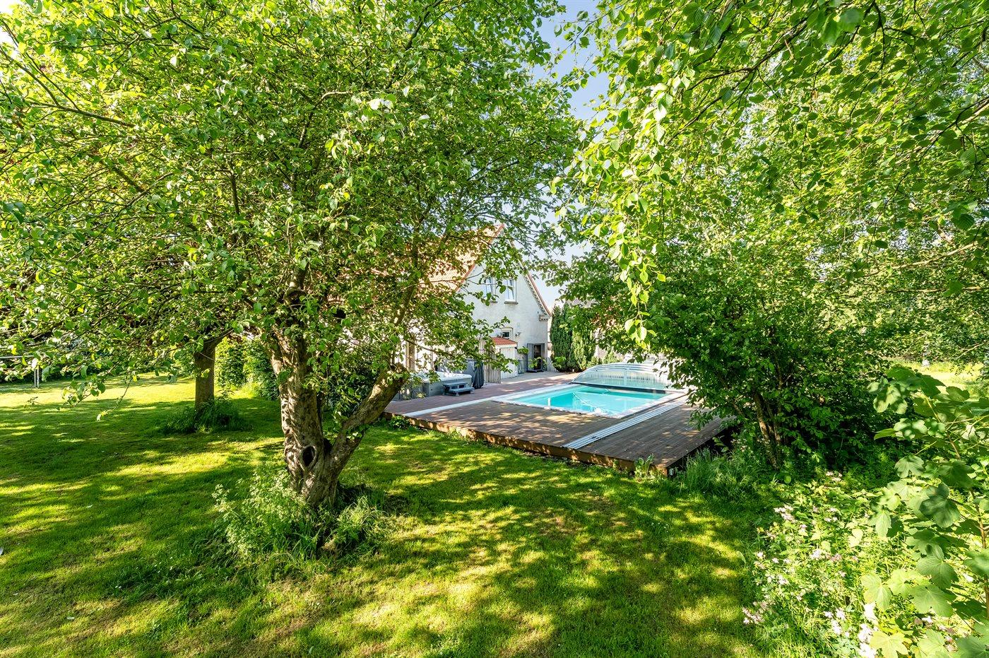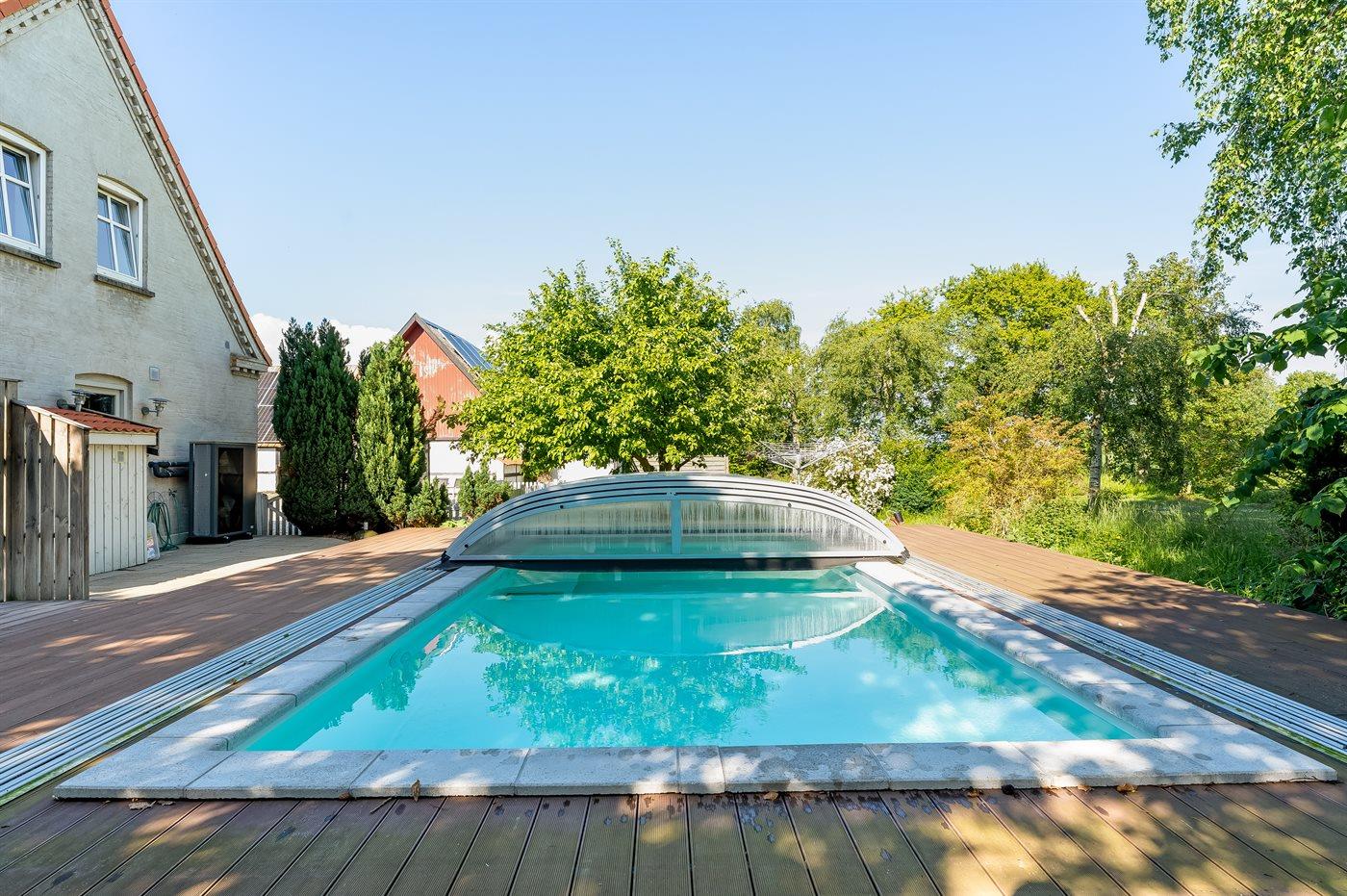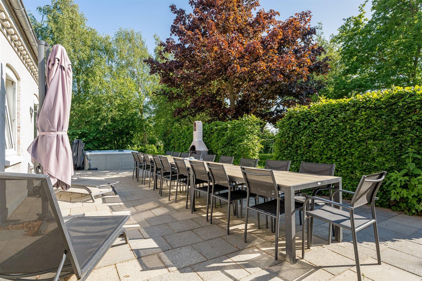 I landlige omgivelser ligger denne store feriebolig velegnet for flere familier, som ønsker at holde ferie sammen. Her er gode aktivitetsmuligheder ude som inde, og med soverum der hovedsageligt ligger på 1. sal inklusive hems, hvor 6 sovepladser befinder sig. Aktivitetsrum findes i åben forbindelse med opholdsstuen. Den udendørs swimmingpool står til rådighed fra 1. juni til 31. august.
