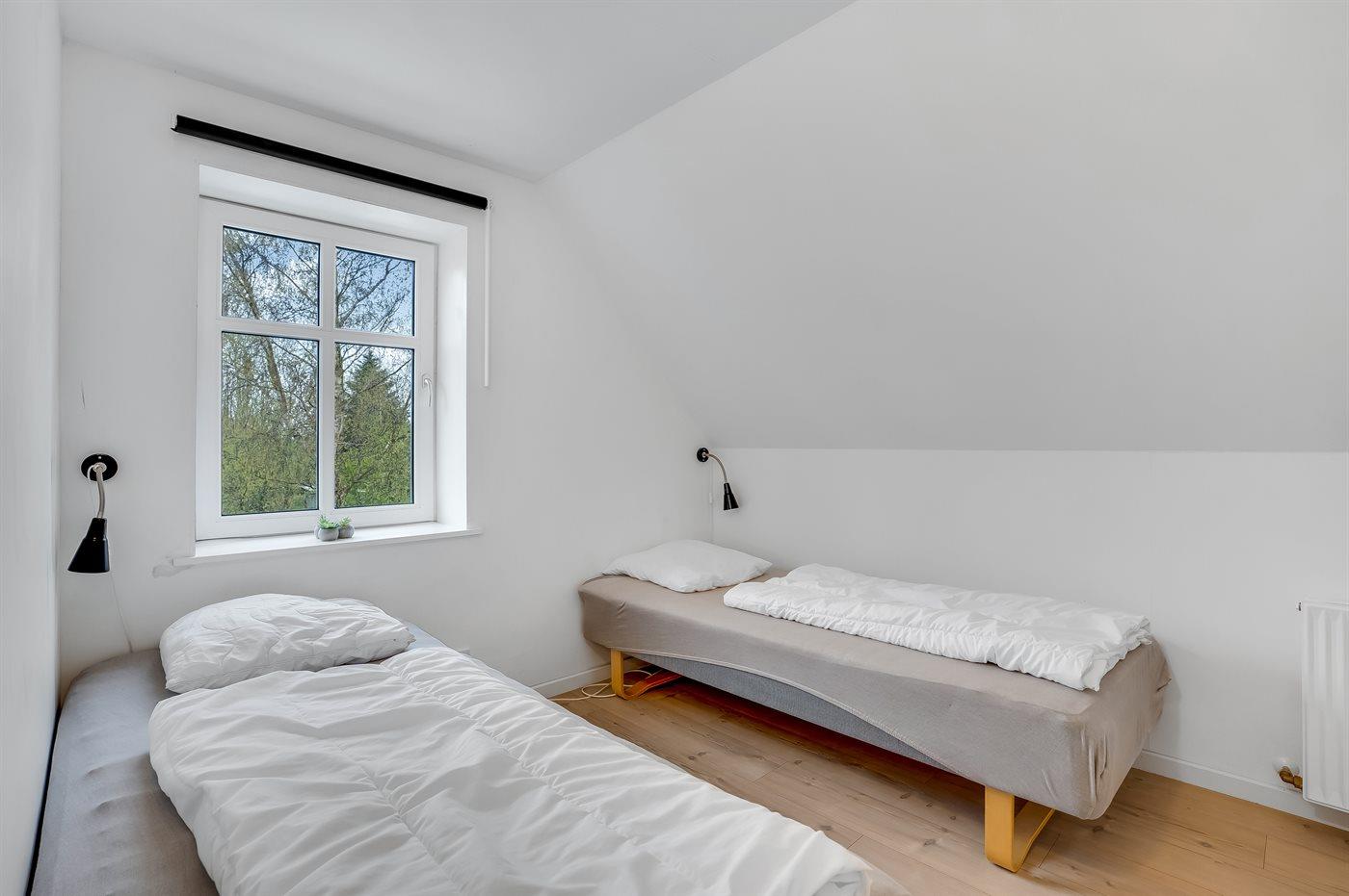 Der er i alt 9 soveværelser. Sovepladserne fordeler sig på: 4 sovepladser i dobbeltsenge. 14 sovepladser i enkeltsenge. 6 sovepladser på madrasser. 6 af disse sovepladser befinder sig på husets hems. Derudover er der 2 stk. barnesenge.