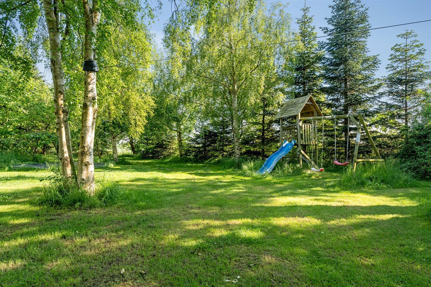 Ferieboligen er beliggende på en 5014 m² stor havegrund. Der er 1500 m til havet. Nærmeste forretning er beliggende i en afstand af 1300 m. Til ferieboligen hører 60 m² terrasseareal. Der er redskabsrum. Gynge. Sandkasse. Trampolin. Legetårn. Rutchebane. Petanque. Fodboldmål. Parkering ved ferieboligen.