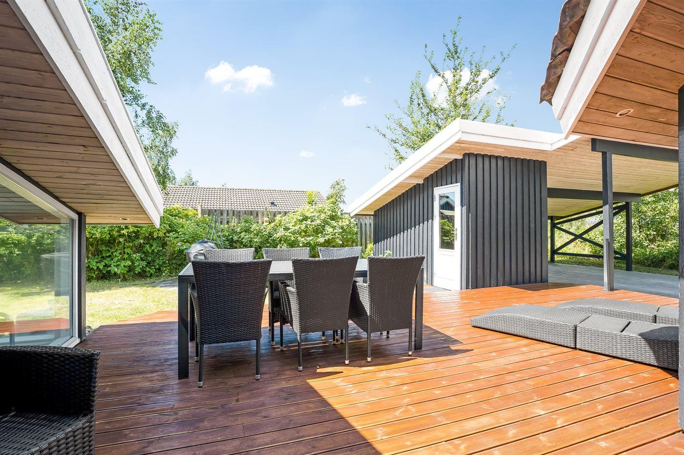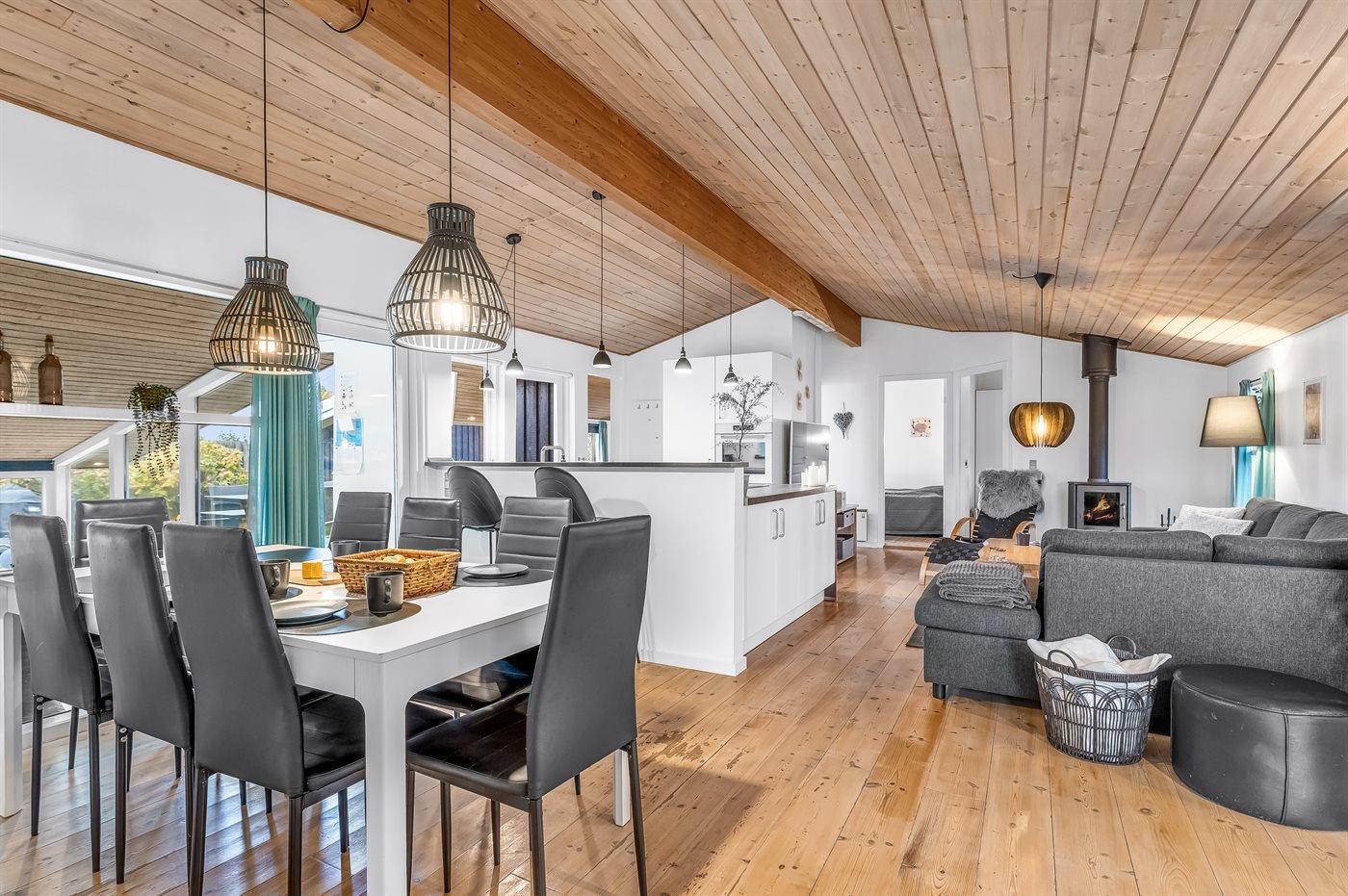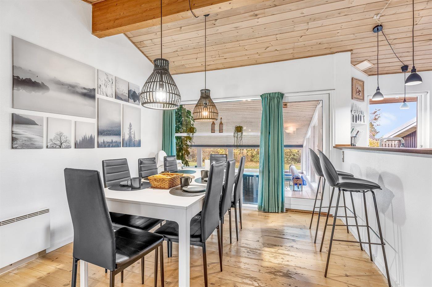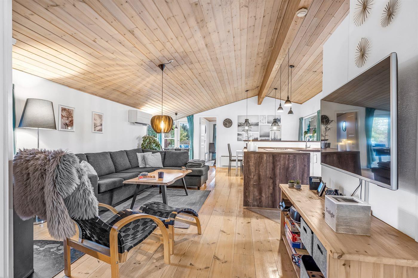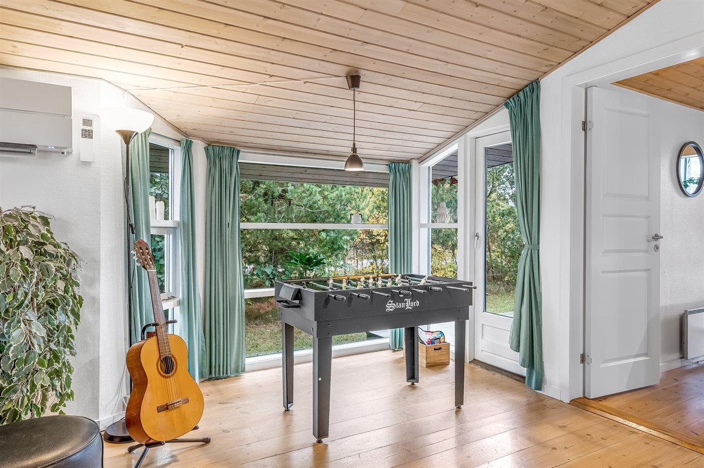 Rummeligt sommerhus beliggende på en lukket grund med skønne terrasser på flere sider af huset. Huset ligger i et roligt og naturskønt område tæt på fuglereservat og skøn børnevenlig badestrand.