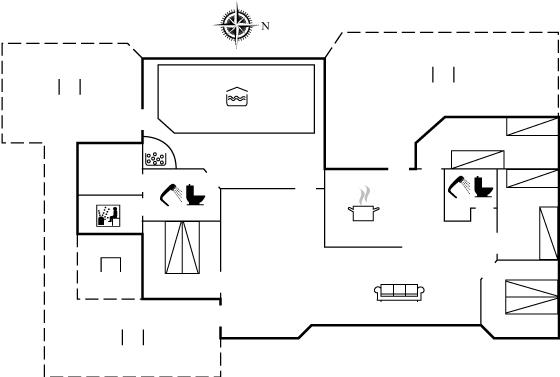 Der er 2 badeværelser med bruseniche og 2 toiletter. Der er gulvvarme på 2 badeværelser. I saunaen er der mulighed for afslapning.