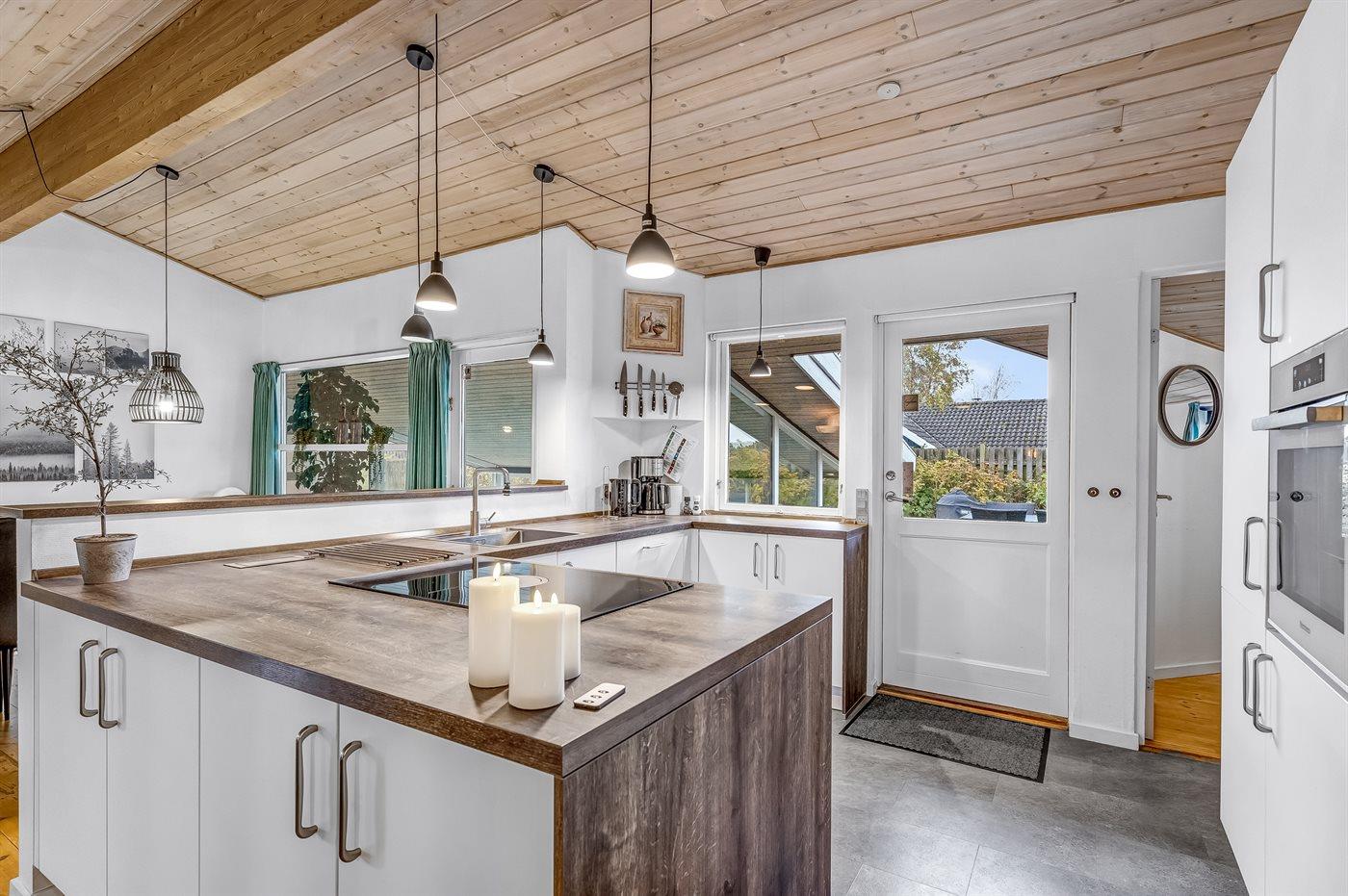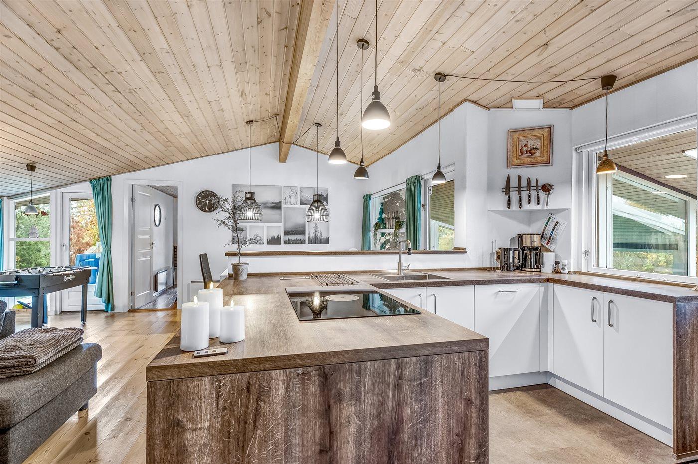 Køkkenet er udstyret med 1 køleskab. Der er 4 induktionskogeplader, varmluftovn, mikrobølgeovn samt opvaskemaskine.
