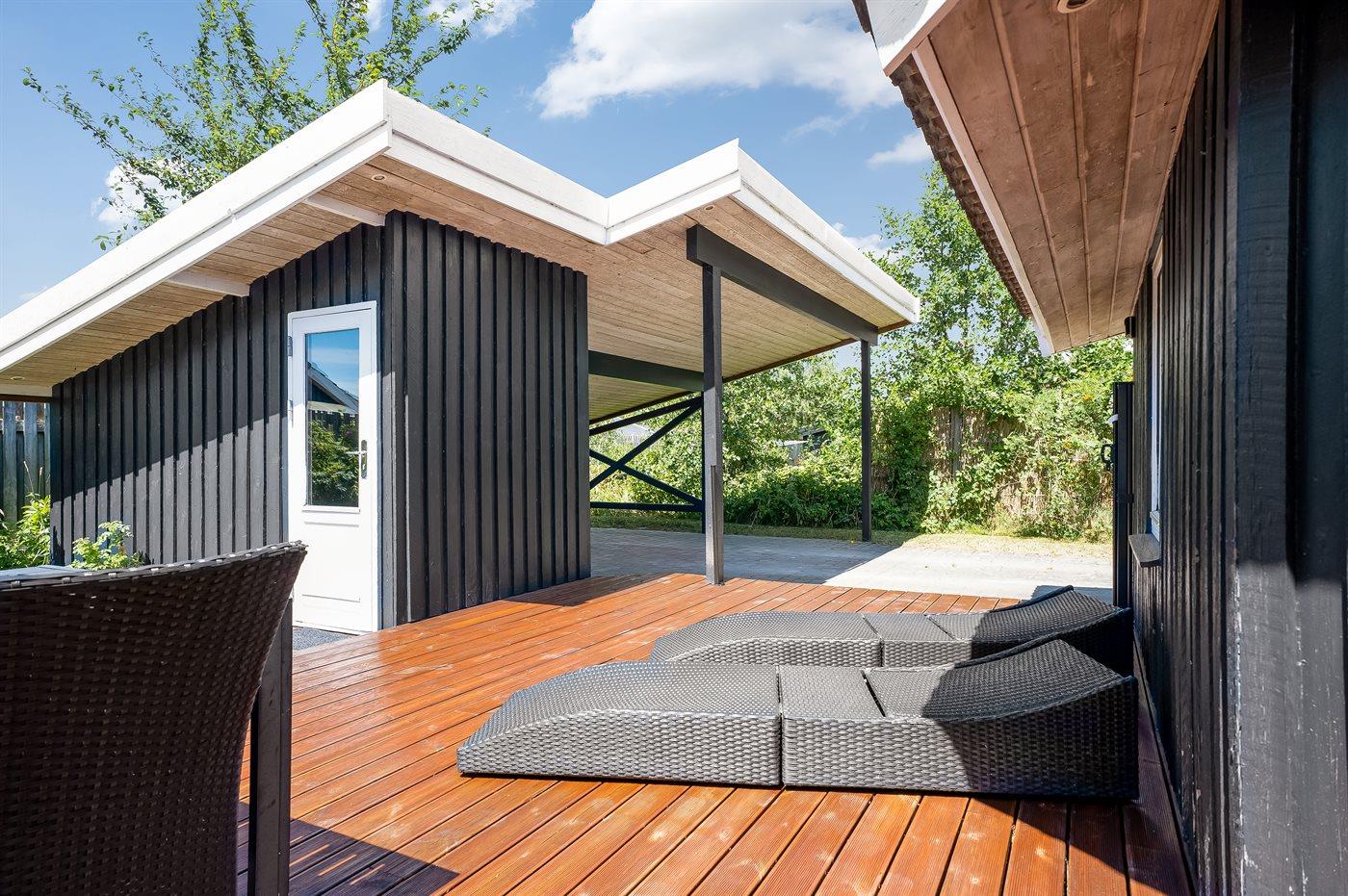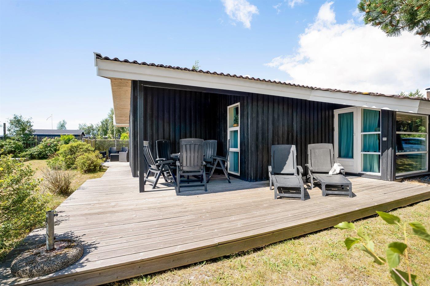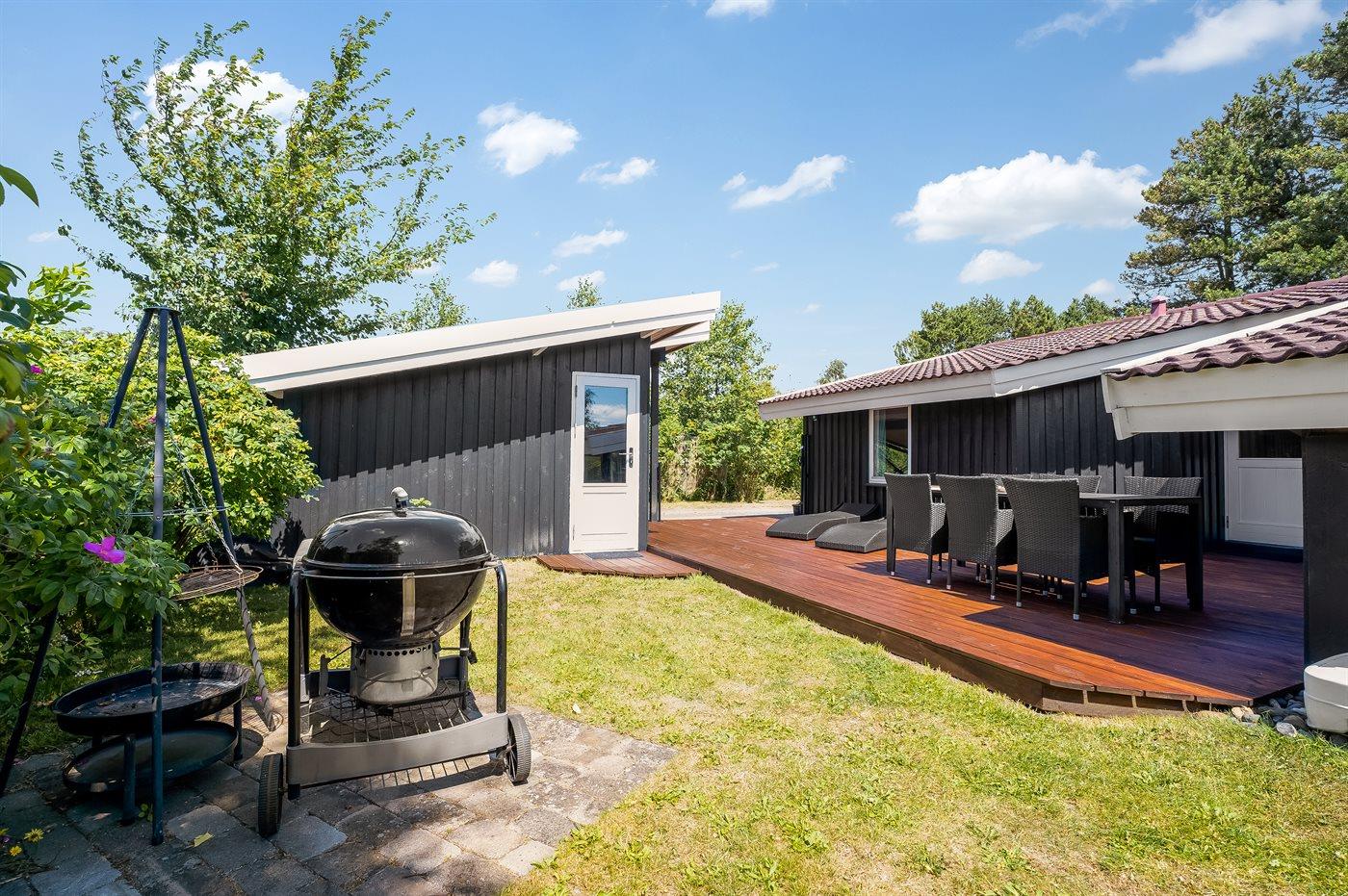 Ferieboligen er beliggende på en 1023 m² stor havegrund. Der er 900 m til havet. Nærmeste forretning er beliggende i en afstand af 1800 m. Der er en golfbane i en afstand af 2000 m. Til ferieboligen hører 40 m² terrasseareal. Desuden er der 8 m² overdækket terrasse. Der er redskabsrum. Gynge. Sandkasse. Trampolin. Rutchebane. Bålsted. Grill til rådighed. Der er carport til rådighed. Parkering ved ferieboligen.