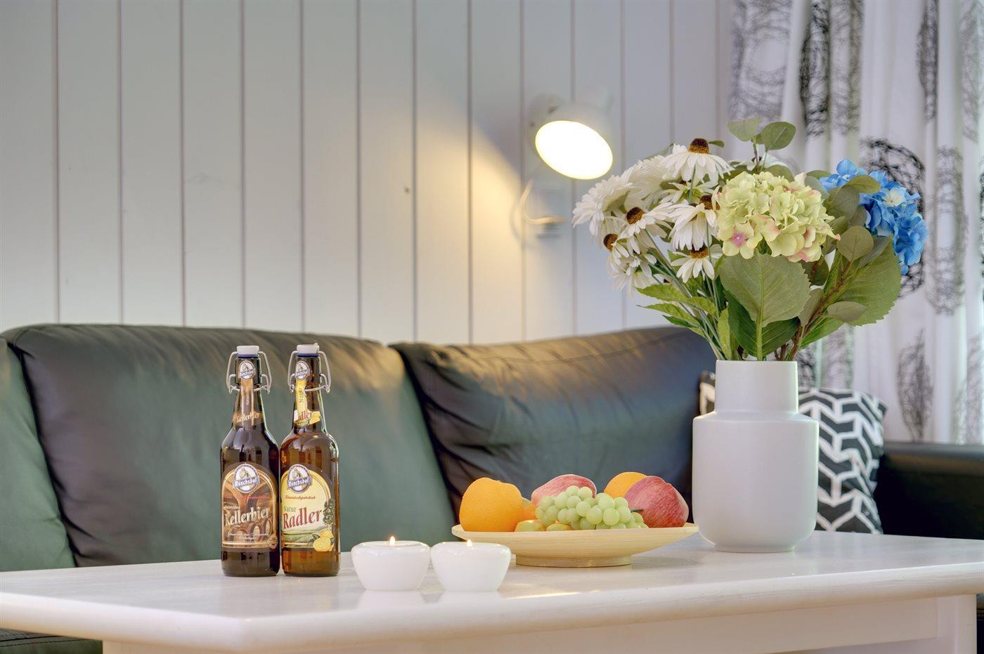 Køkkenet er udstyret med 1 køleskab. Der er 4 keramiske kogeplader, varmluftovn, mikrobølgeovn samt opvaskemaskine.