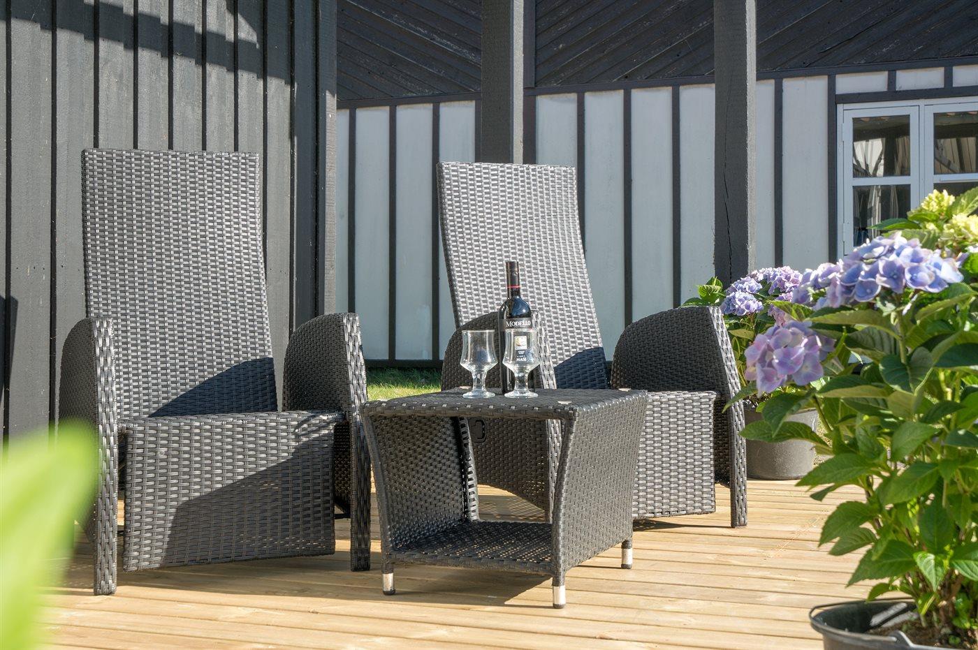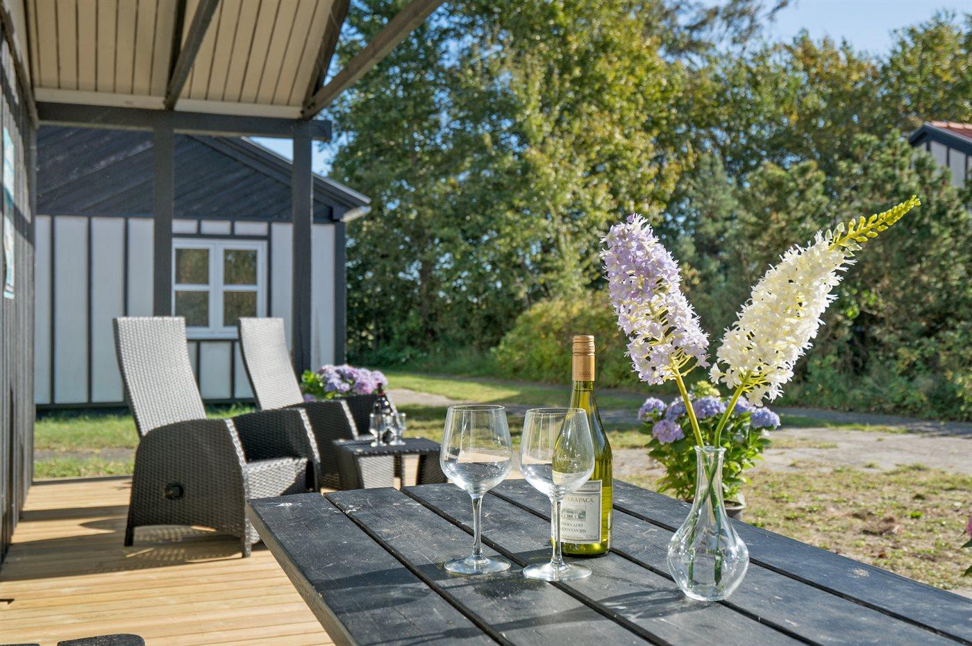 Ferieboligen er beliggende på en 100 m² stor naturgrund. Der er 55 m til havet. Nærmeste forretning er beliggende i en afstand af 300 m. Der er en golfbane i en afstand af 2500 m. Til ferieboligen hører 15 m² terrasseareal. Desuden er der 10 m² overdækket terrasse. Gratis fællesparkering 50-90 m fra huset.
