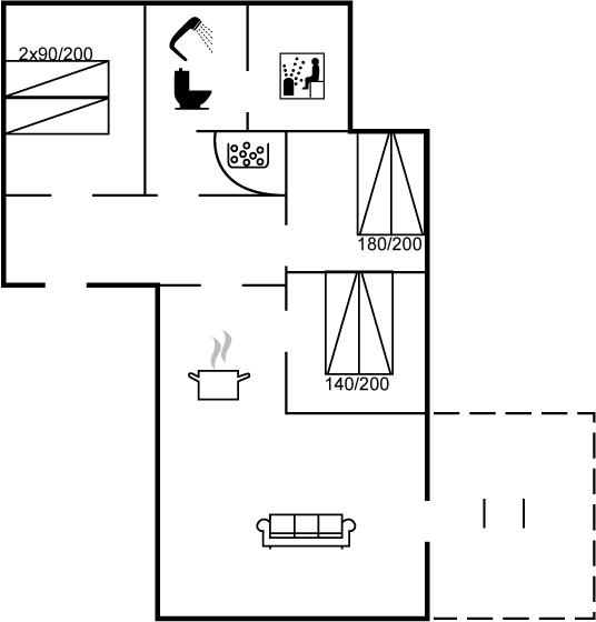 Der er 1 badeværelse med bruseniche og 1 toilet. I saunaen er der mulighed for afslapning.