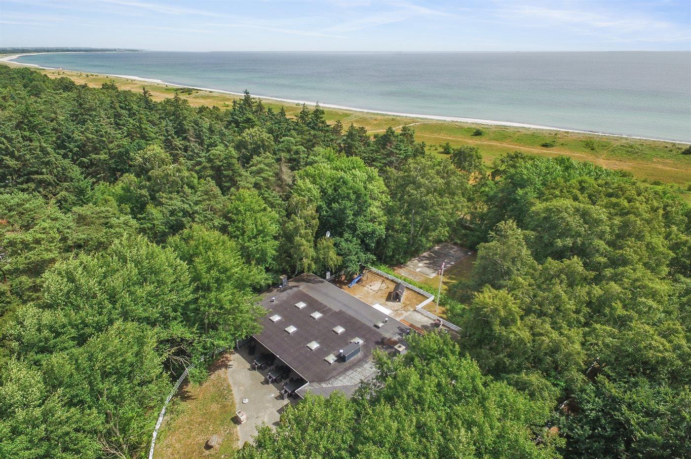 Ferieboligen er beliggende på en 3172 m² stor naturgrund. Der er 50 m til havet. Nærmeste forretning er beliggende i en afstand af 700 m. Der er en golfbane i en afstand af 1500 m. Til ferieboligen hører 100 m² terrasseareal. Der er redskabsrum. Gynge. Sandkasse. Legetårn. Rutchebane. Der er 2 grill til rådighed. Parkering ved ferieboligen.
