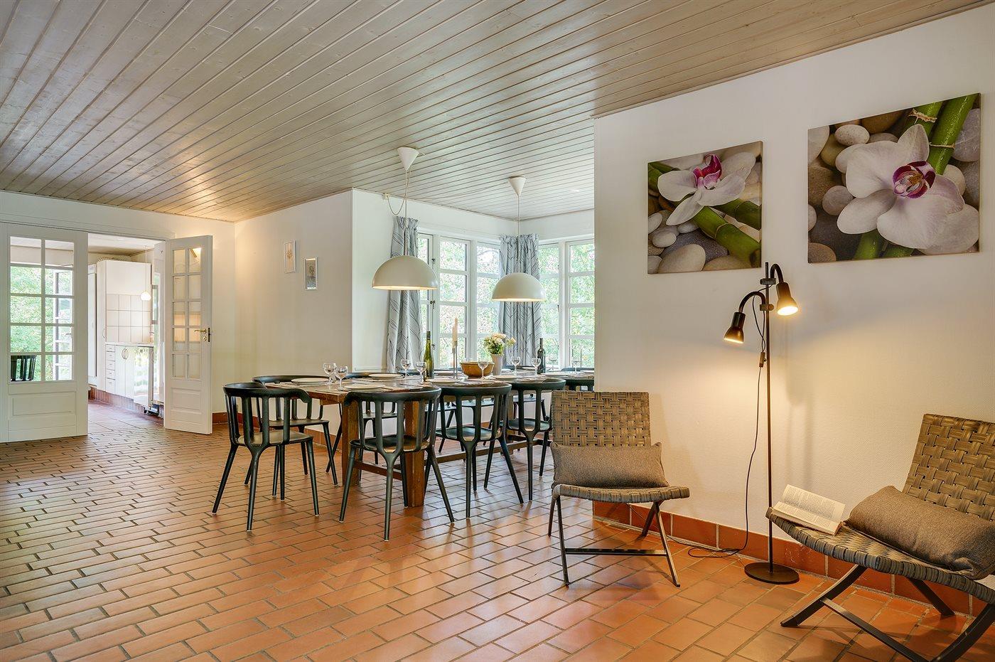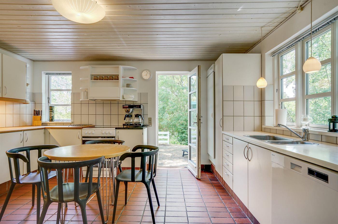 Køkkenet er udstyret med 2 køleskabe. Der er 4 keramiske kogeplader, varmluftovn, mikrobølgeovn samt opvaskemaskine.