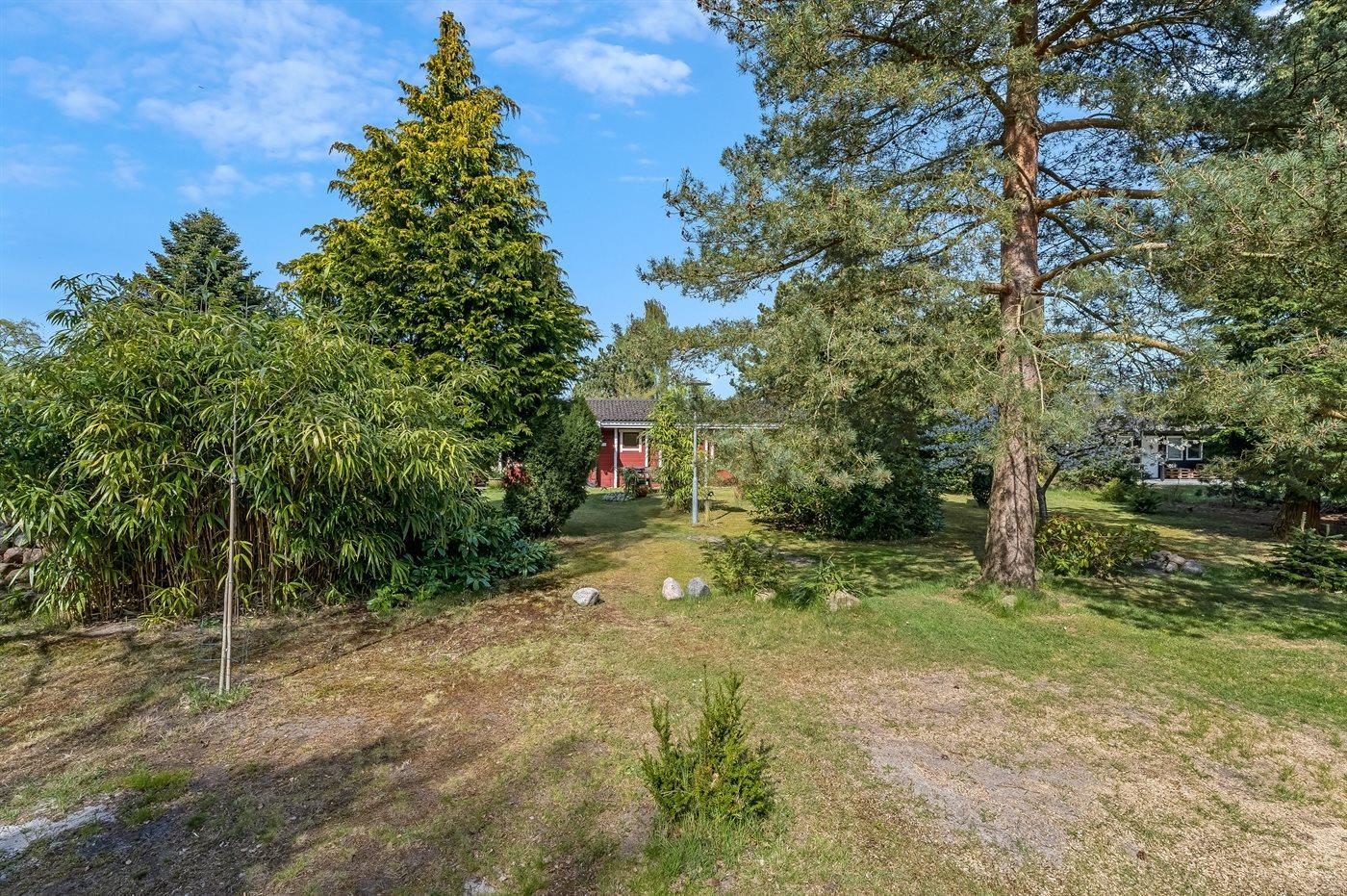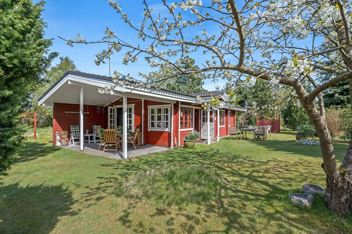 Et hyggeligt, ældre sommerhus beliggende på en rolig vej. Grunden er dejlig kuperet med diverse træer og buske.