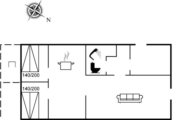Der er i alt 2 soveværelser. Sovepladserne fordeler sig på: 4 sovepladser i dobbeltsenge. Derudover er der 1 stk. barneseng.