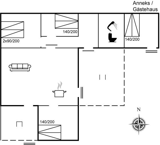 Der er i alt 4 soveværelser. Sovepladserne fordeler sig på: 6 sovepladser i dobbeltsenge. 2 sovepladser i enkeltsenge. 2 af disse sovepladser befinder sig i et anneks.