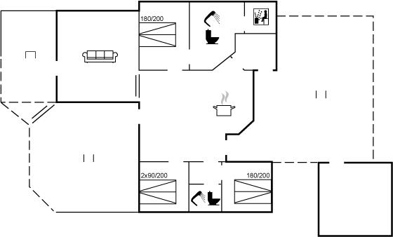Ferieboligen har 2 moderne badeværelser, begge med bruseniche og 2 toiletter. I det ene badeværelse er der desuden et dejligt badekar og en sauna, som giver dig mulighed for at slappe af og nyde den fulde ferieoplevelse.
