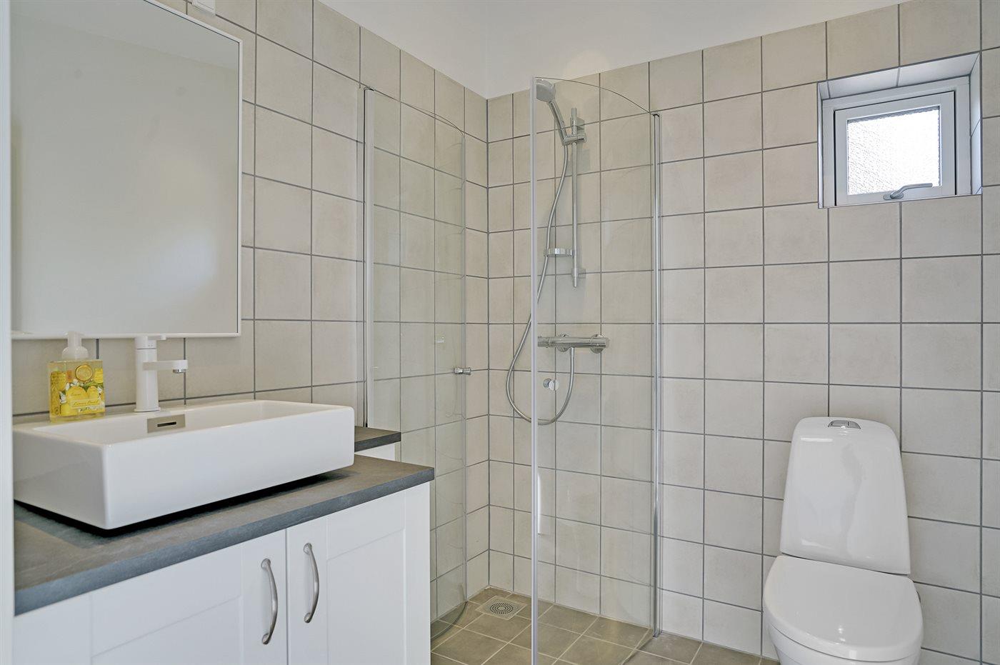 Der er 1 badeværelse med bruseniche og 1 toilet.. Der er gulvvarme på 1 badeværelse.