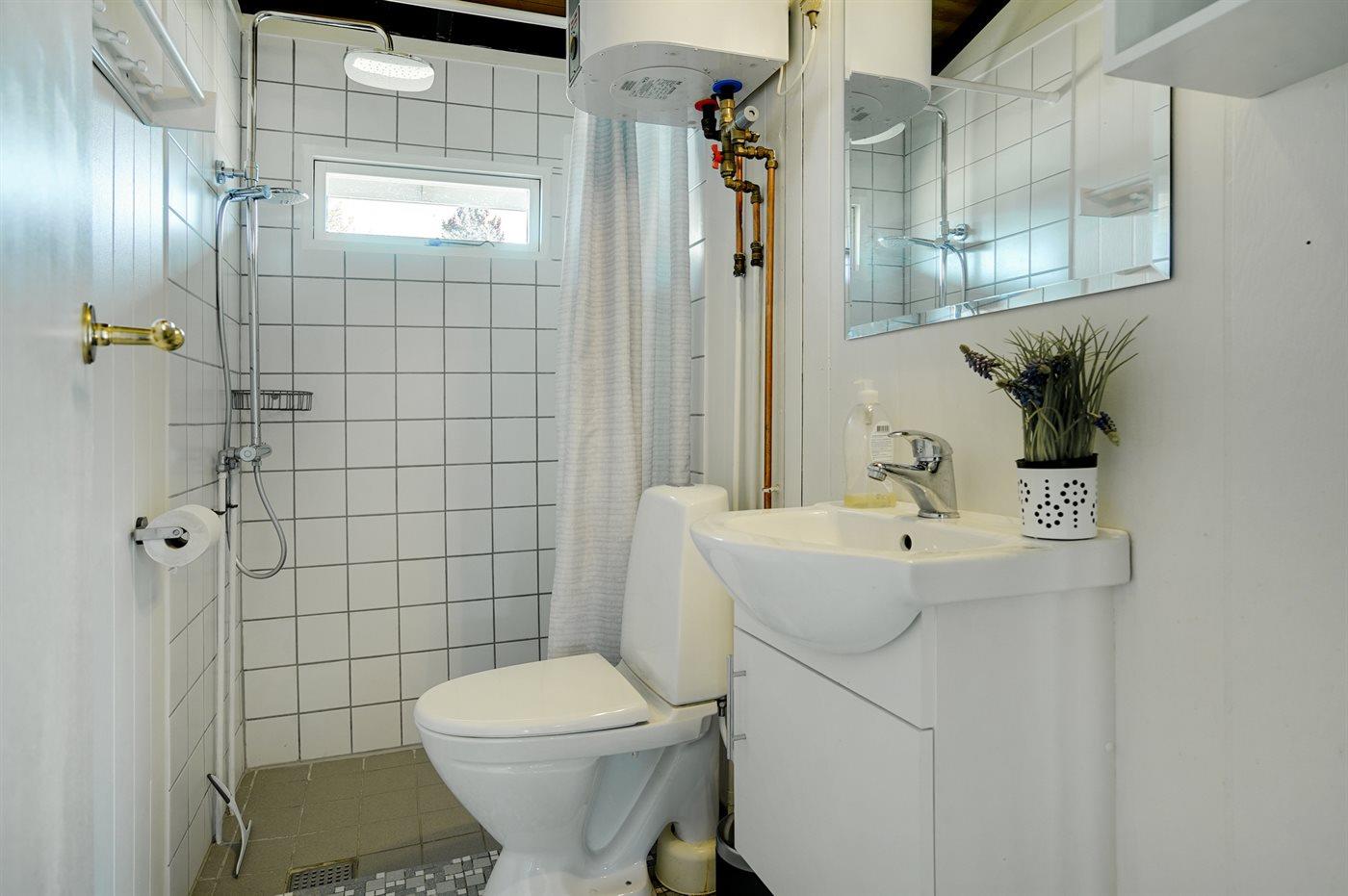 Der er 1 badeværelse med bruseniche og 1 toilet.