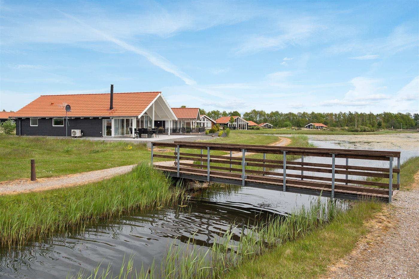 Nyt sommerhus ved søen i Marielyst med moderne faciliteter og smuk naturudsigt.