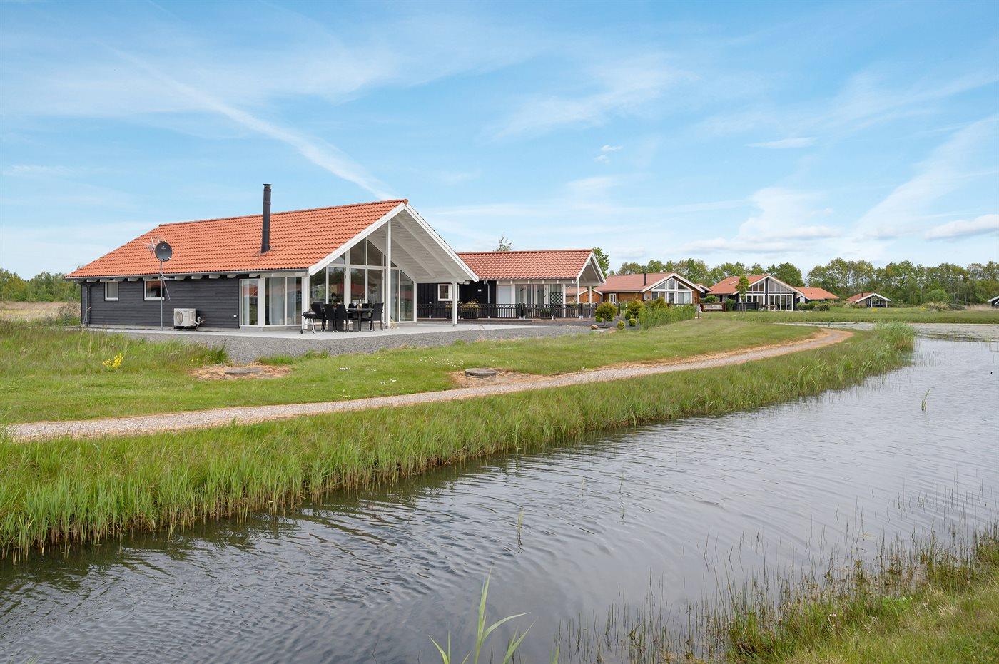 Moderne sommerhus ved sø med smuk udsigt