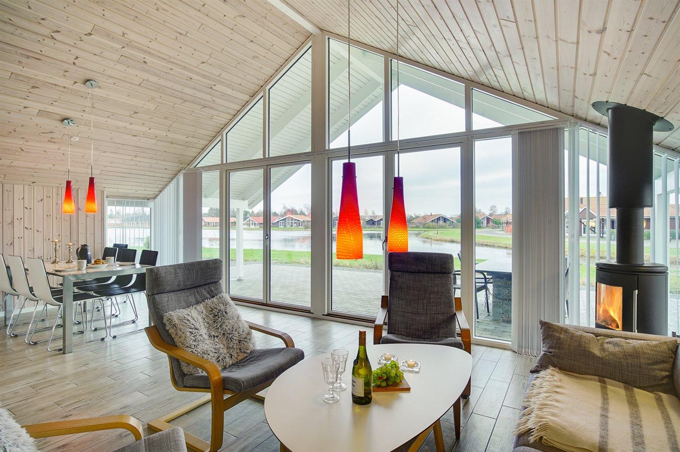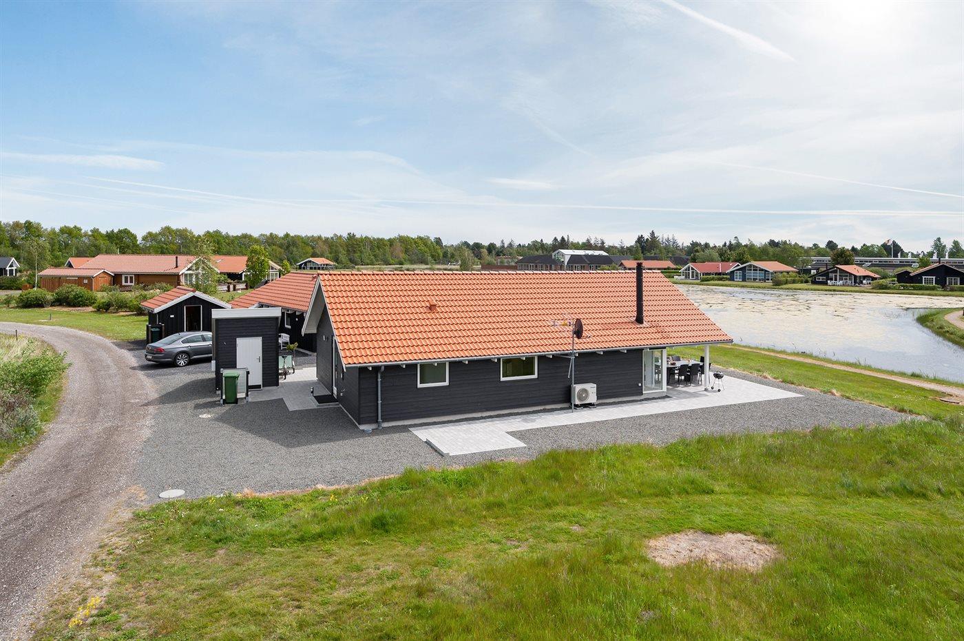 Skønt nyt (2019) sommerhus beliggende lige ud til en større sø med udsigt over vandet fra såvel hus som grund. Huset ligger i det attraktive område Marielyst Strandpark Ferieby - tæt på bowling, velkomstcentret, golf, indkøb og nær Danmarks bedste og mest børnevenlige badestrand, der blev kåret i både 2013 og 2014. Huset er indrettet lyst og indbydende med adgang til hems, hvor 2 af sovepladserne befinder sig.