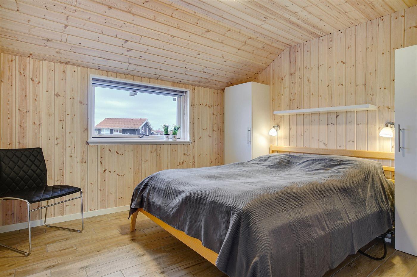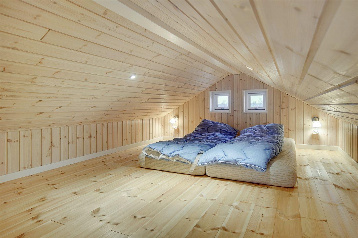 Der er i alt 3 soveværelser. Sovepladserne fordeler sig på: 6 sovepladser i dobbeltsenge. 2 sovepladser på madrasser. 2 af disse sovepladser befinder sig på husets hems.