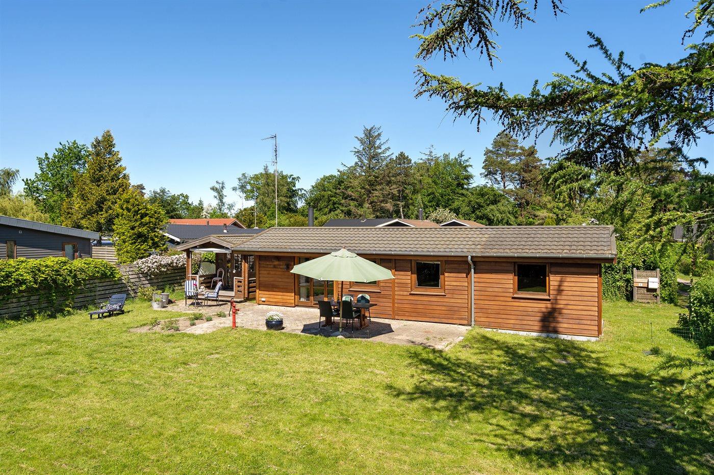 Ferieboligen er beliggende på en 714 m² stor havegrund. Grunden er indhegnet. Der er 100 m til havet. Nærmeste forretning er beliggende i en afstand af 1200 m. Der er en golfbane i en afstand af 3000 m. Til ferieboligen hører 30 m² terrasseareal. Desuden er der 6 m² overdækket terrasse. Gynge. Legetårn. Udendørs bruser. Grill til rådighed. Der er installeret stik til opladning af elbil. Parkering ved ferieboligen.