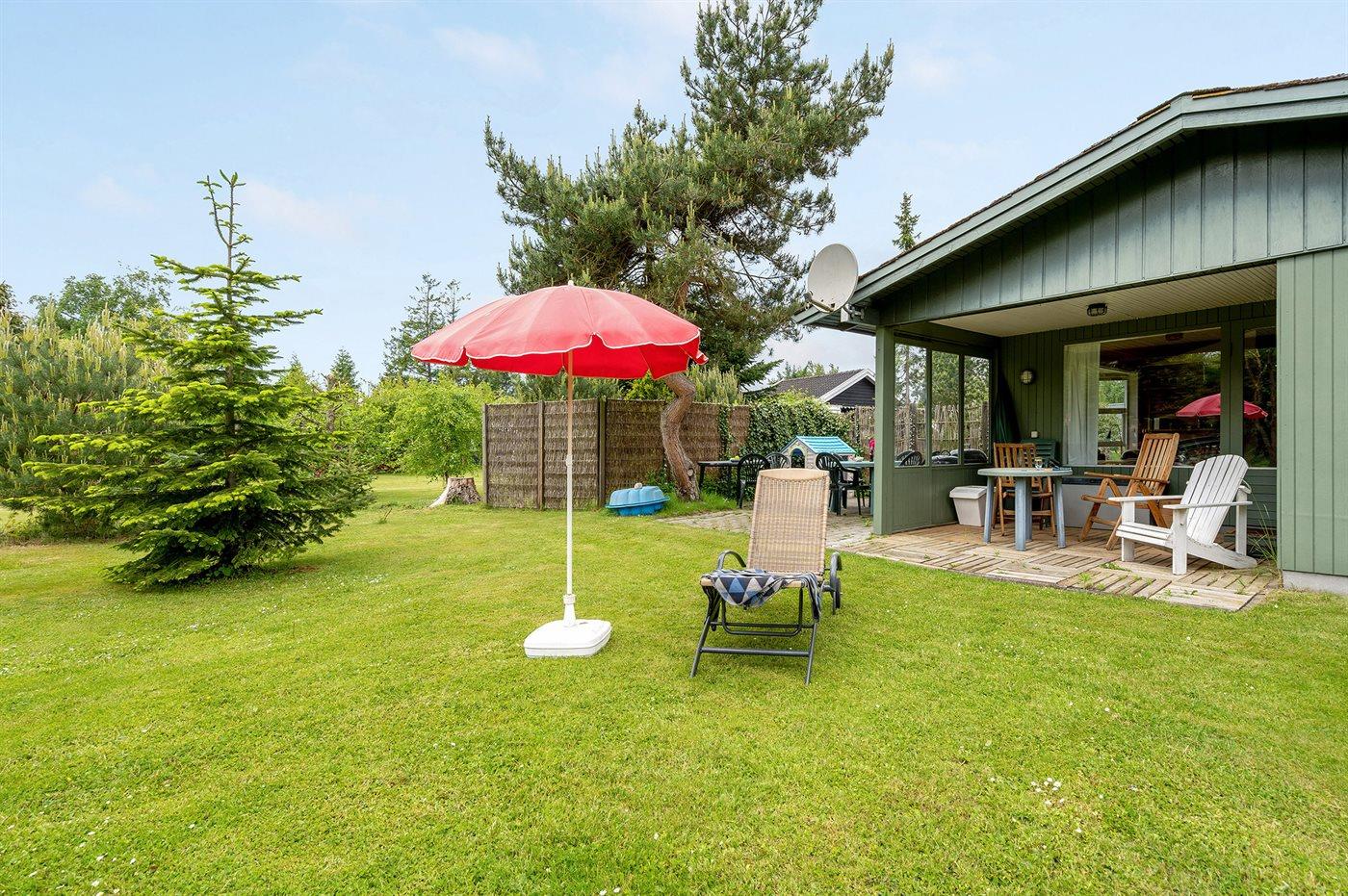 Ferieboligen er beliggende på en 930 m² stor havegrund. Der er 575 m til havet. Nærmeste forretning er beliggende i en afstand af 500 m. Der er en golfbane i en afstand af 1000 m. Til ferieboligen hører 10 m² terrasseareal. Desuden er der 12 m² overdækket terrasse. Gynge. Sandkasse. Parkering ved ferieboligen.