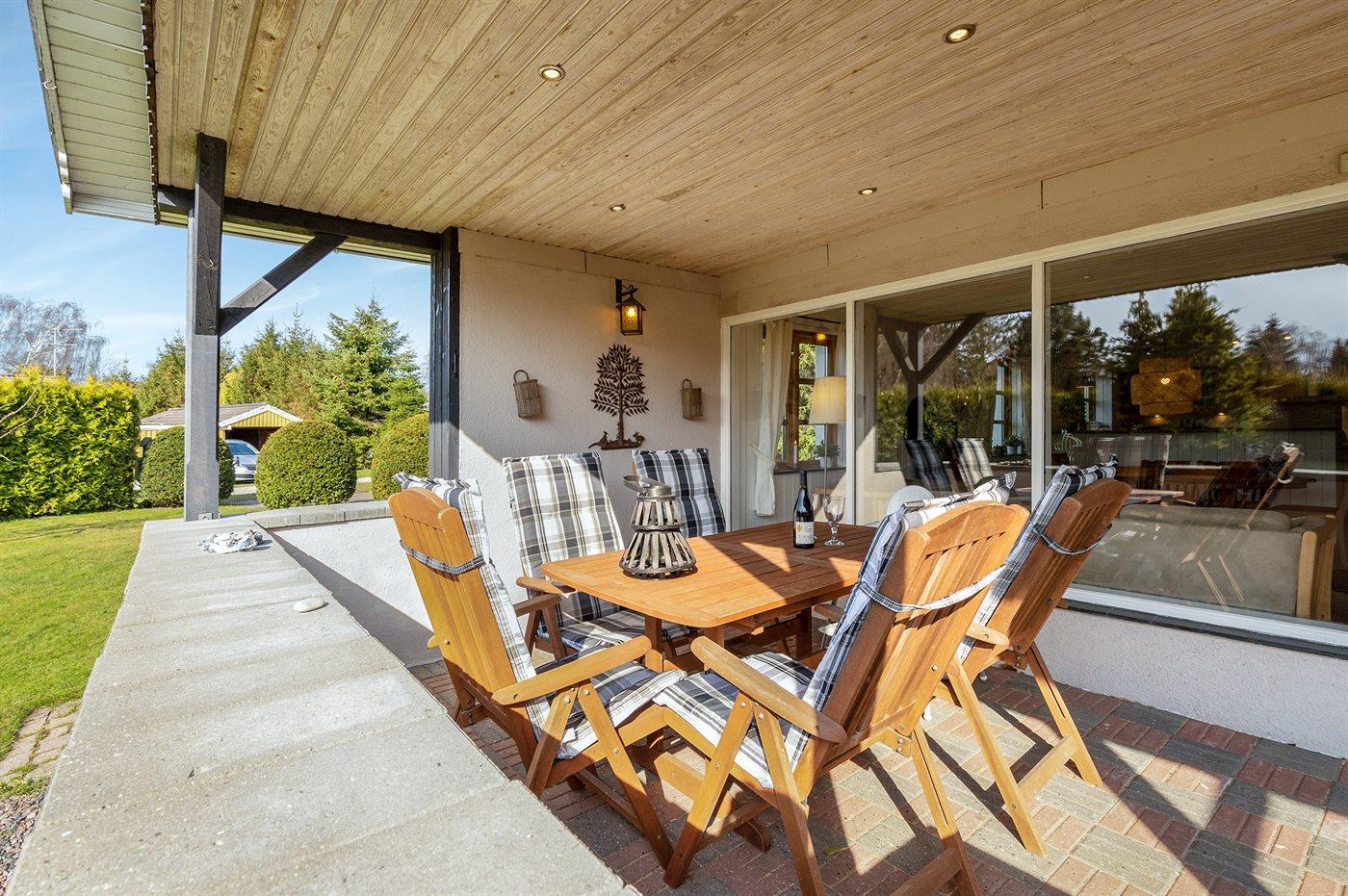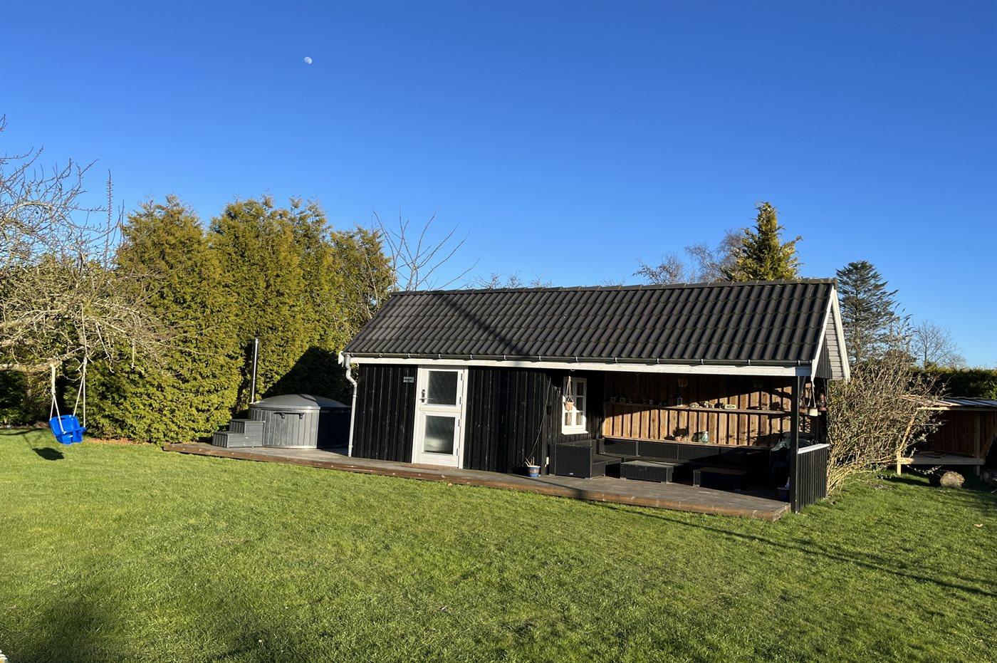 Ferieboligen er beliggende på en 1120 m² stor havegrund. Der er 250 m til havet. Nærmeste forretning er beliggende i en afstand af 1000 m. I sommermånederne er der 500 meter til den lokale lille købmand. Der er en golfbane i en afstand af 2500 m. Desuden er der 30 m² overdækket terrasse. Parkering ved ferieboligen.