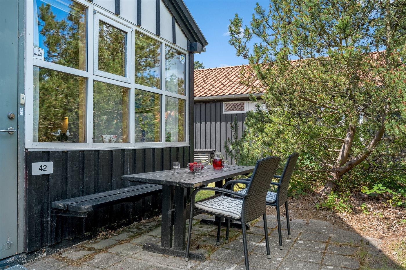 Ferieboligen er beliggende på en 150 m² stor naturgrund. Der er 350 m til havet. Nærmeste forretning er beliggende i en afstand af 350 m. Der er en golfbane i en afstand af 1000 m. Til ferieboligen hører 10 m² terrasseareal. Desuden er der 12 m² ugenert og overdækket terrasse. Gratis fællesparkering 50-90 m fra huset. Der ligger en legeplads i en afstand af 50 m.