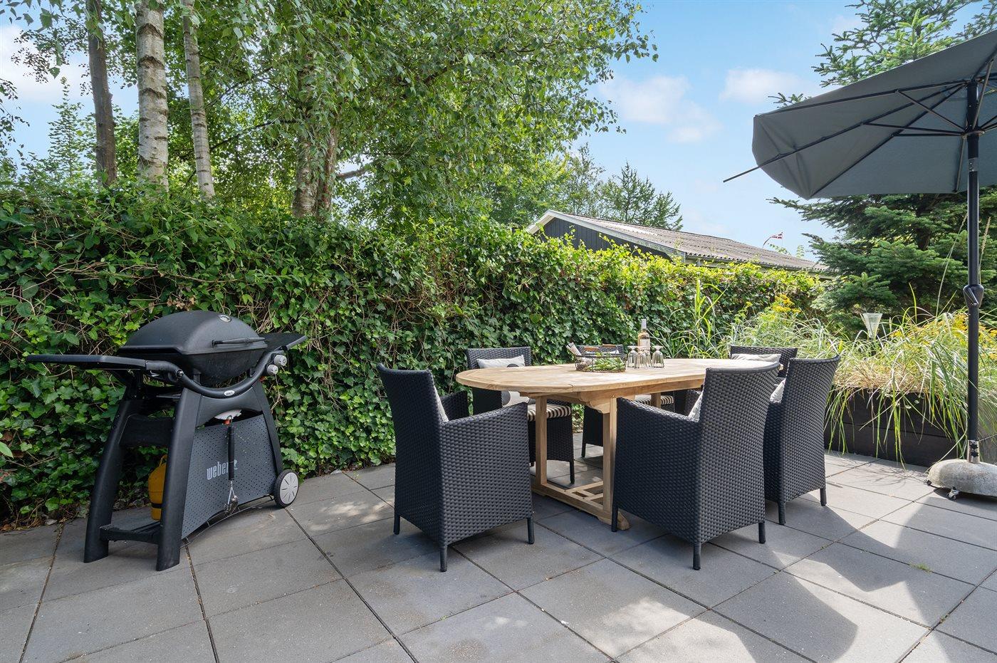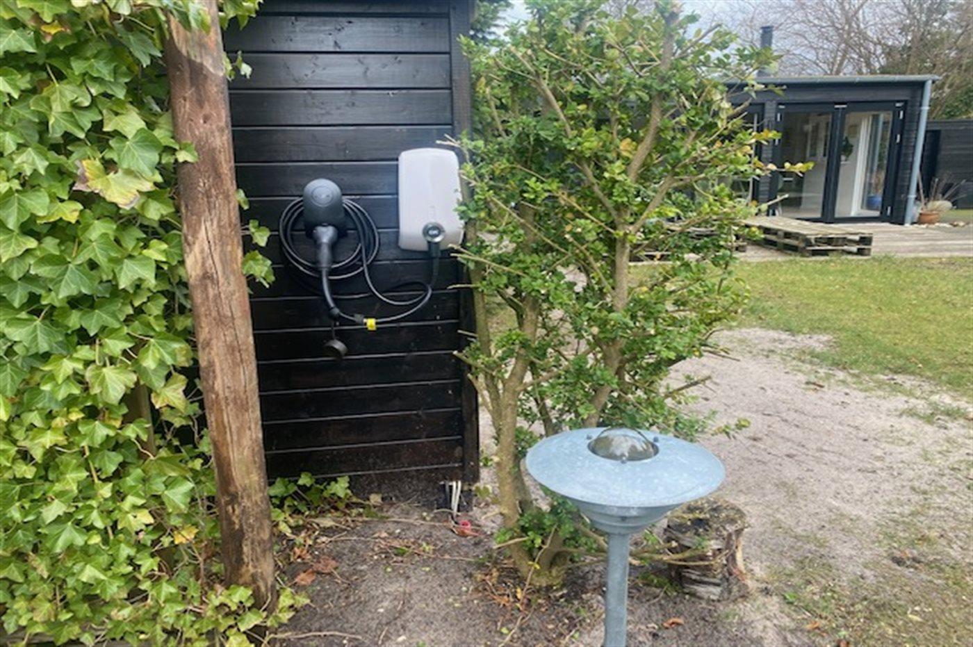 Ferieboligen er beliggende på en 591 m² stor havegrund. Der er 400 m til havet. Nærmeste forretning er beliggende i en afstand af 500 m. Der er en golfbane i en afstand af 500 m. Til ferieboligen hører 50 m² terrasseareal. Sandkasse. Grill til rådighed. Der er installeret stik til opladning af elbil. Type 2 stik. Med 11 kW ladeeffekt. Parkering ved ferieboligen.