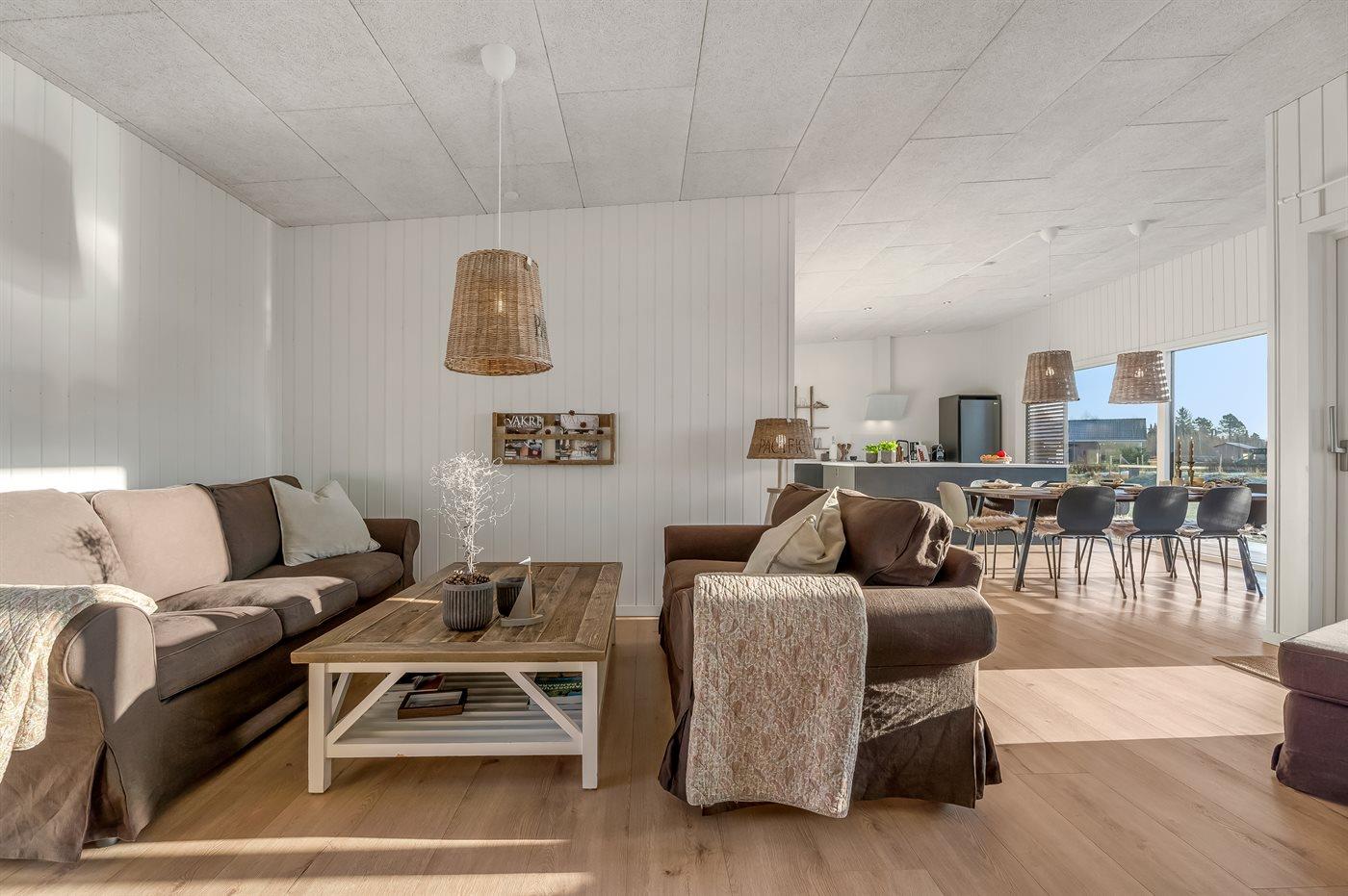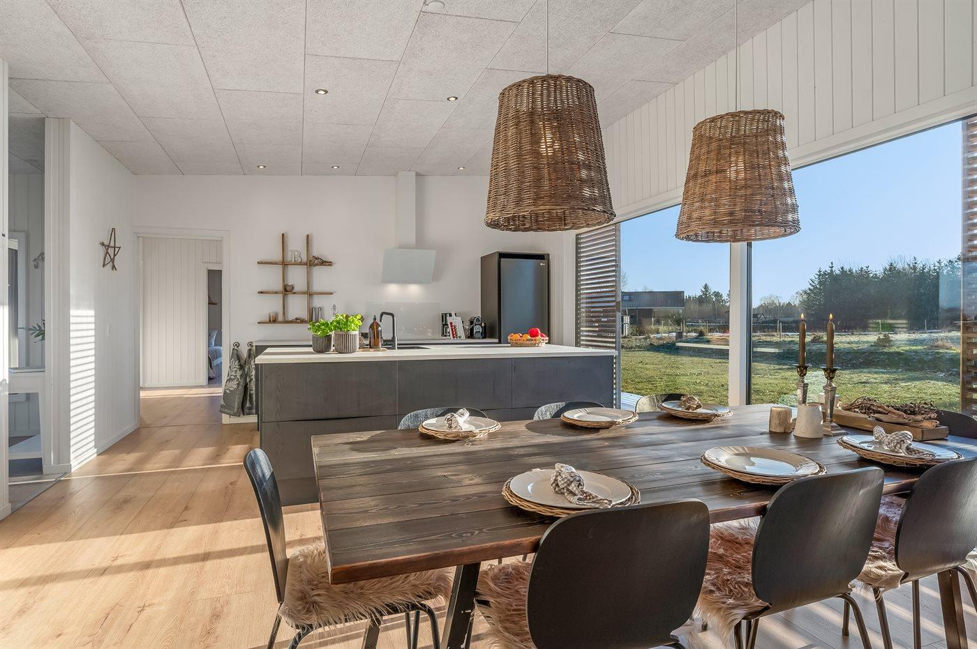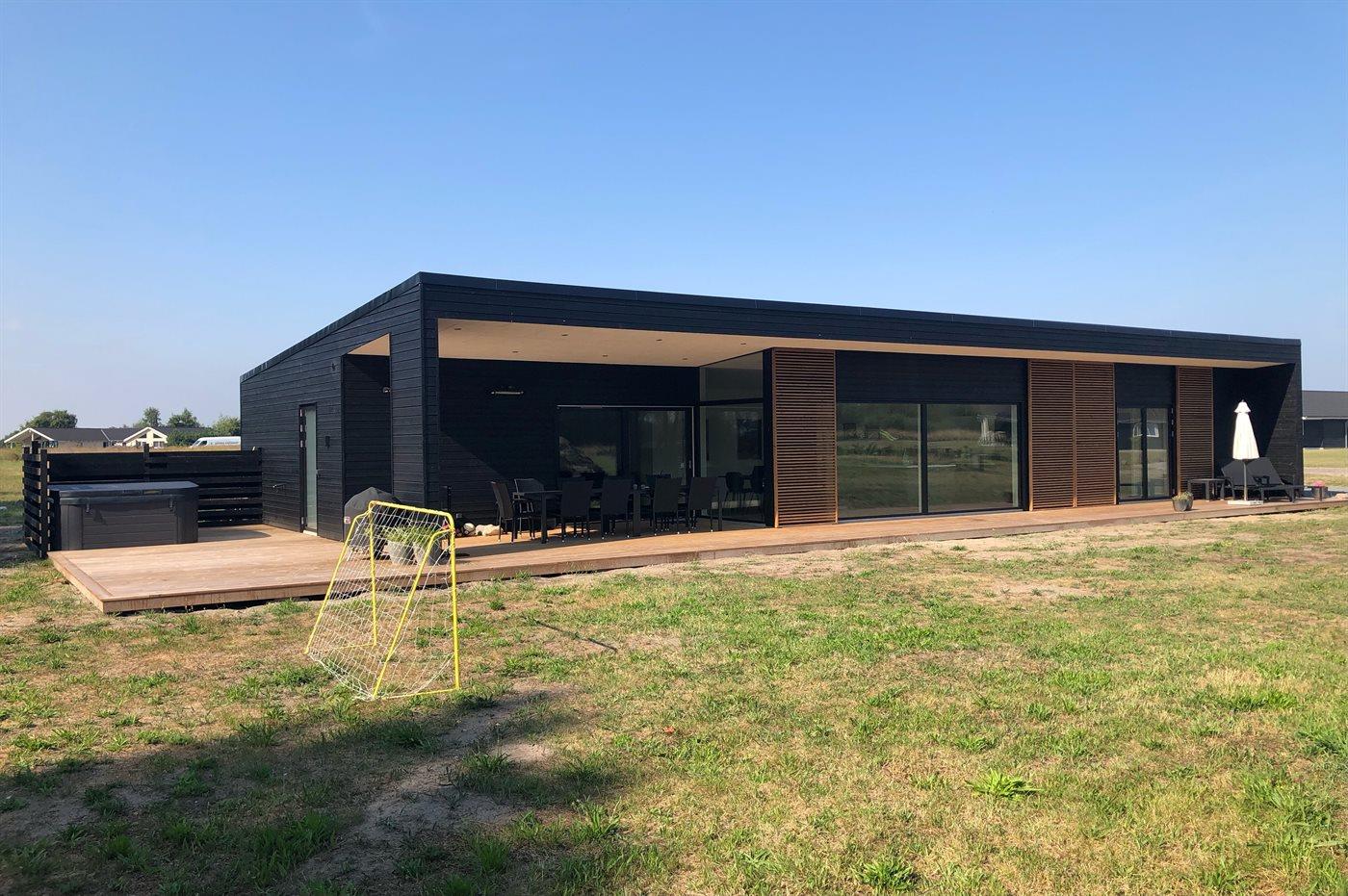 Til huset hører et stort, åbent terrasseareal med grill samt en 18 m² overdækket terrasse, så udelivet kan nydes i al slags vejr. I redskabsrummet findes ekstra liggestole, fodboldmål og forskellige havespil til hyggelige feriestunder.