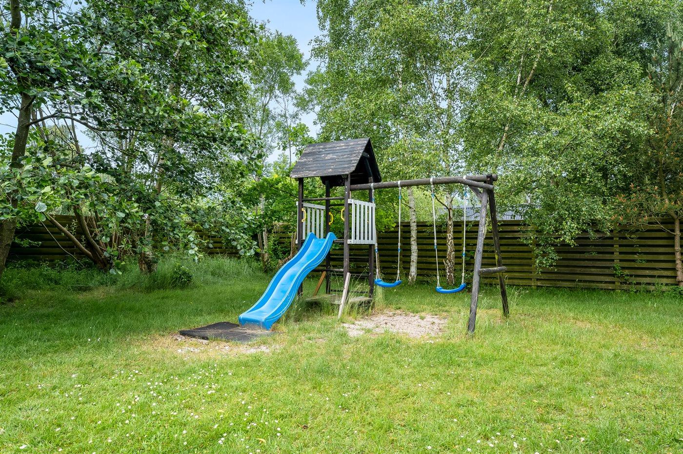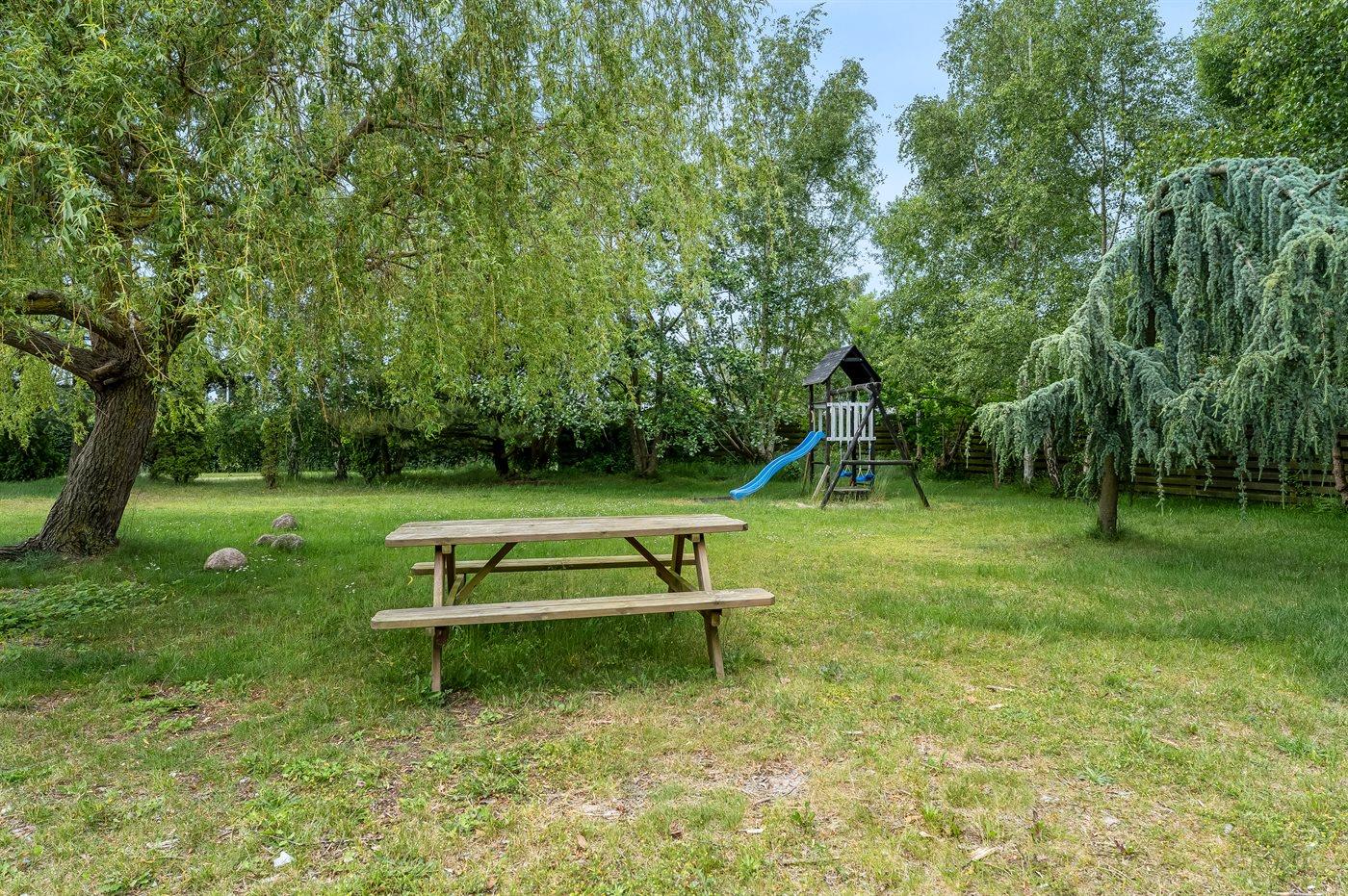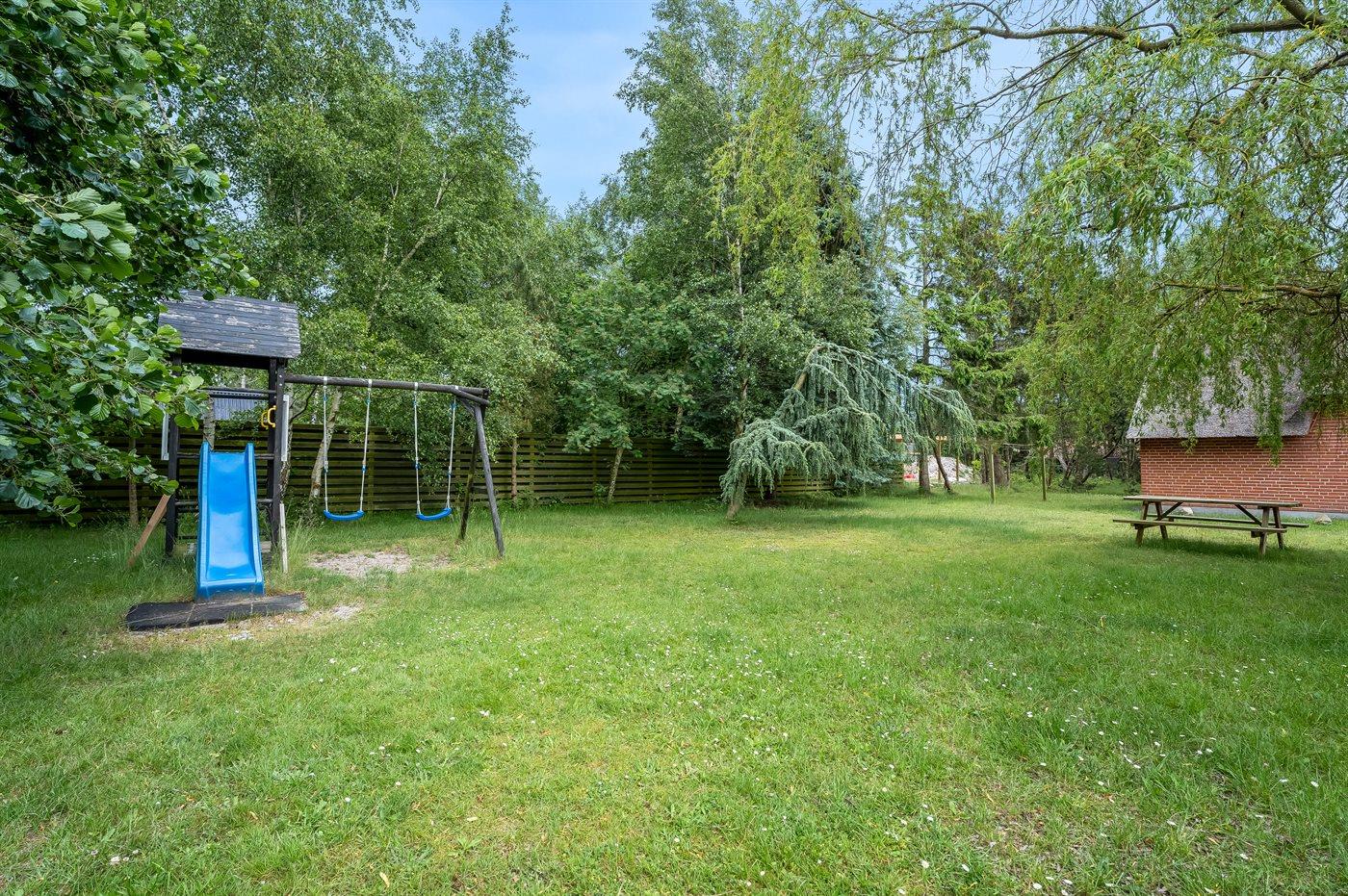 Sandkasse, legetårn, gynge, rutsjebane og fodboldmål til de mindste på grunden. P-plads på grunden. Der er installeret stik til opladning af elbil (11 kW ladeeffekt).