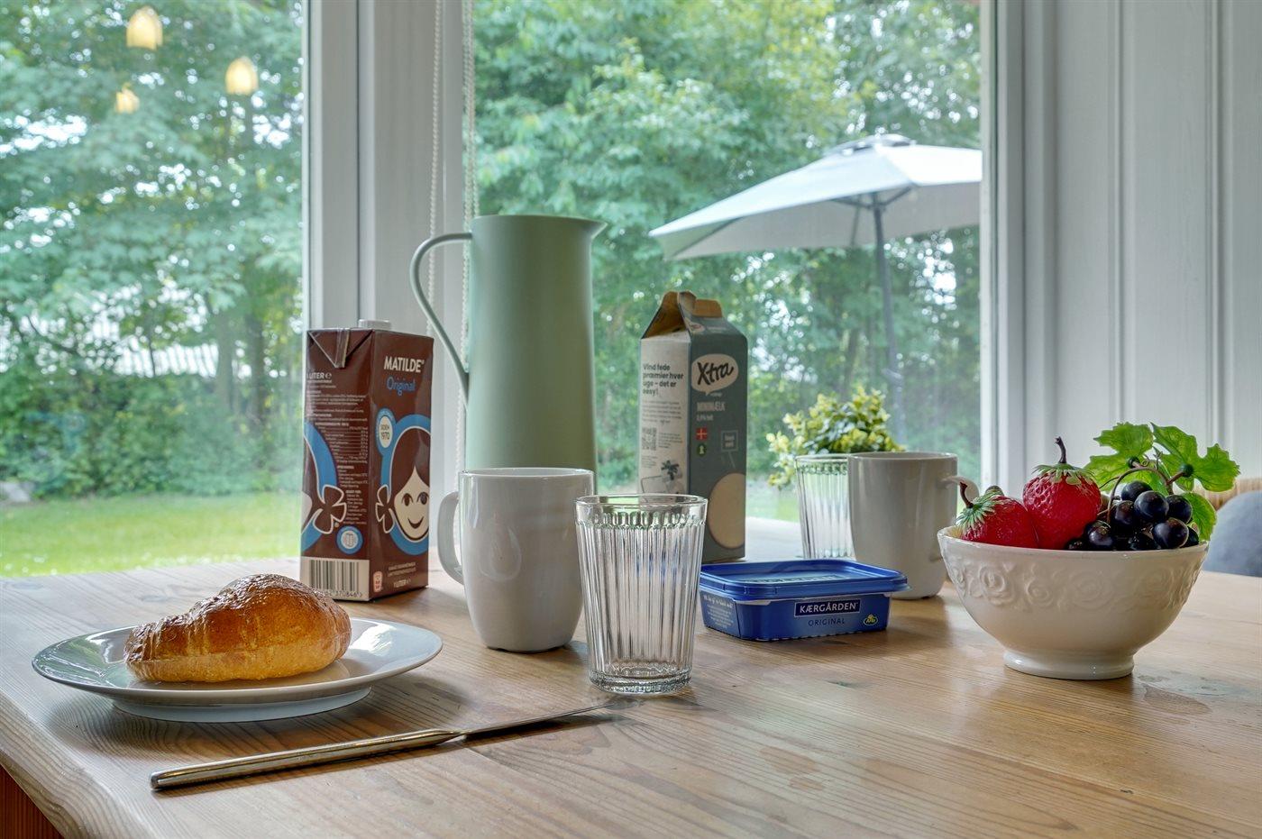Køkkenet er udstyret med 1 køleskab. Der er 4 keramiske kogeplader, varmluftovn, mikrobølgeovn samt opvaskemaskine.