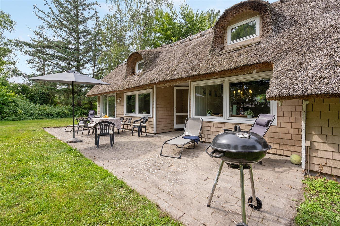 Ferieboligen er beliggende på en 1150 m² stor naturgrund. Der er 750 m til havet. Nærmeste forretning er beliggende i en afstand af 1000 m. Der er en golfbane i en afstand af 850 m. Til ferieboligen hører åbent terrasseareal. Grill til rådighed. Der er installeret stik til opladning af elbil. Type 2 stik. Parkering ved ferieboligen.