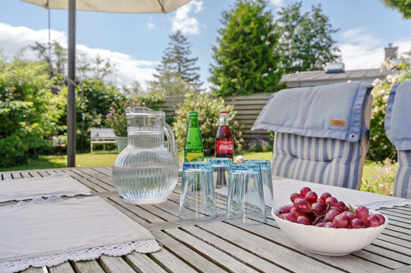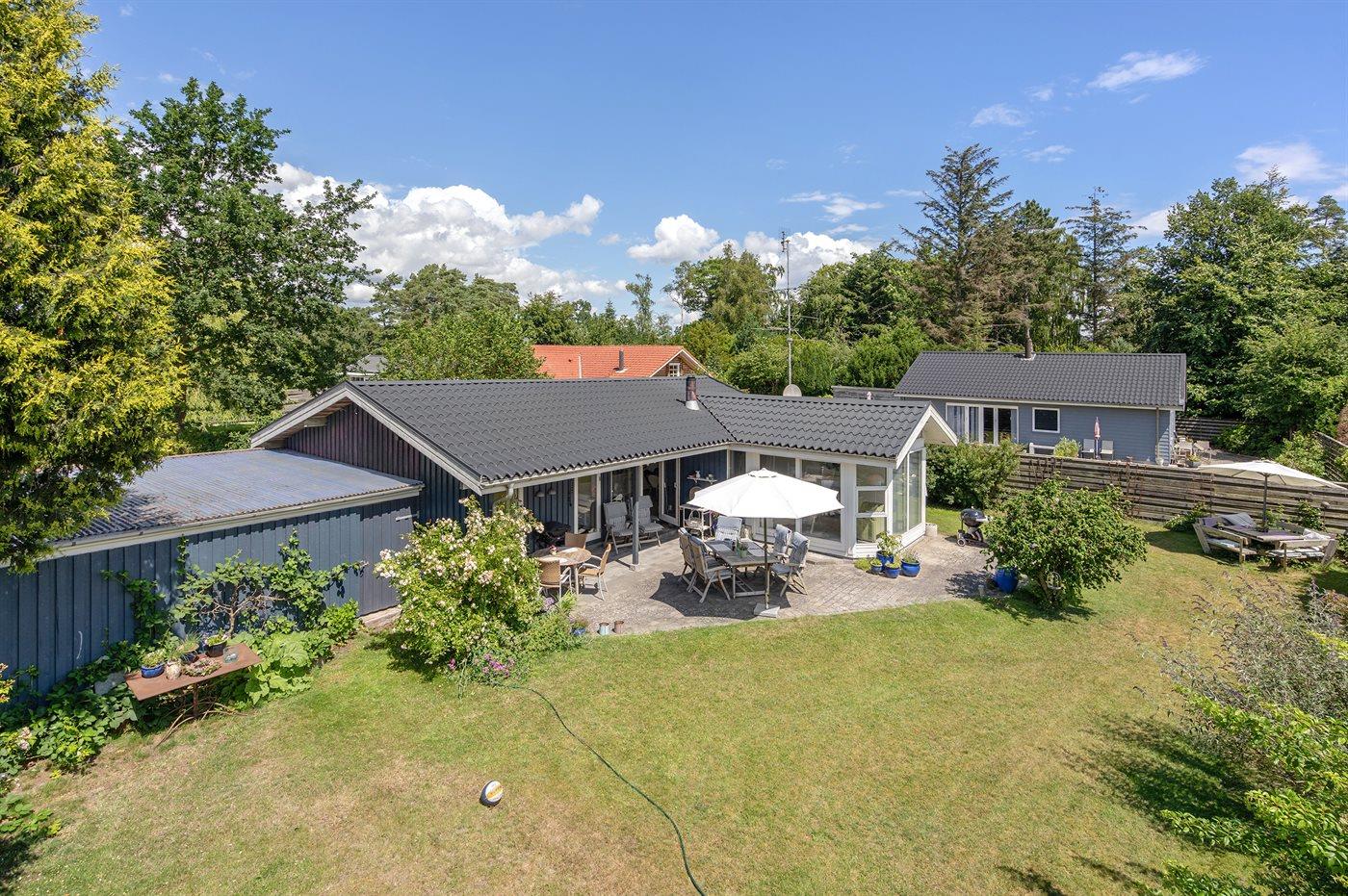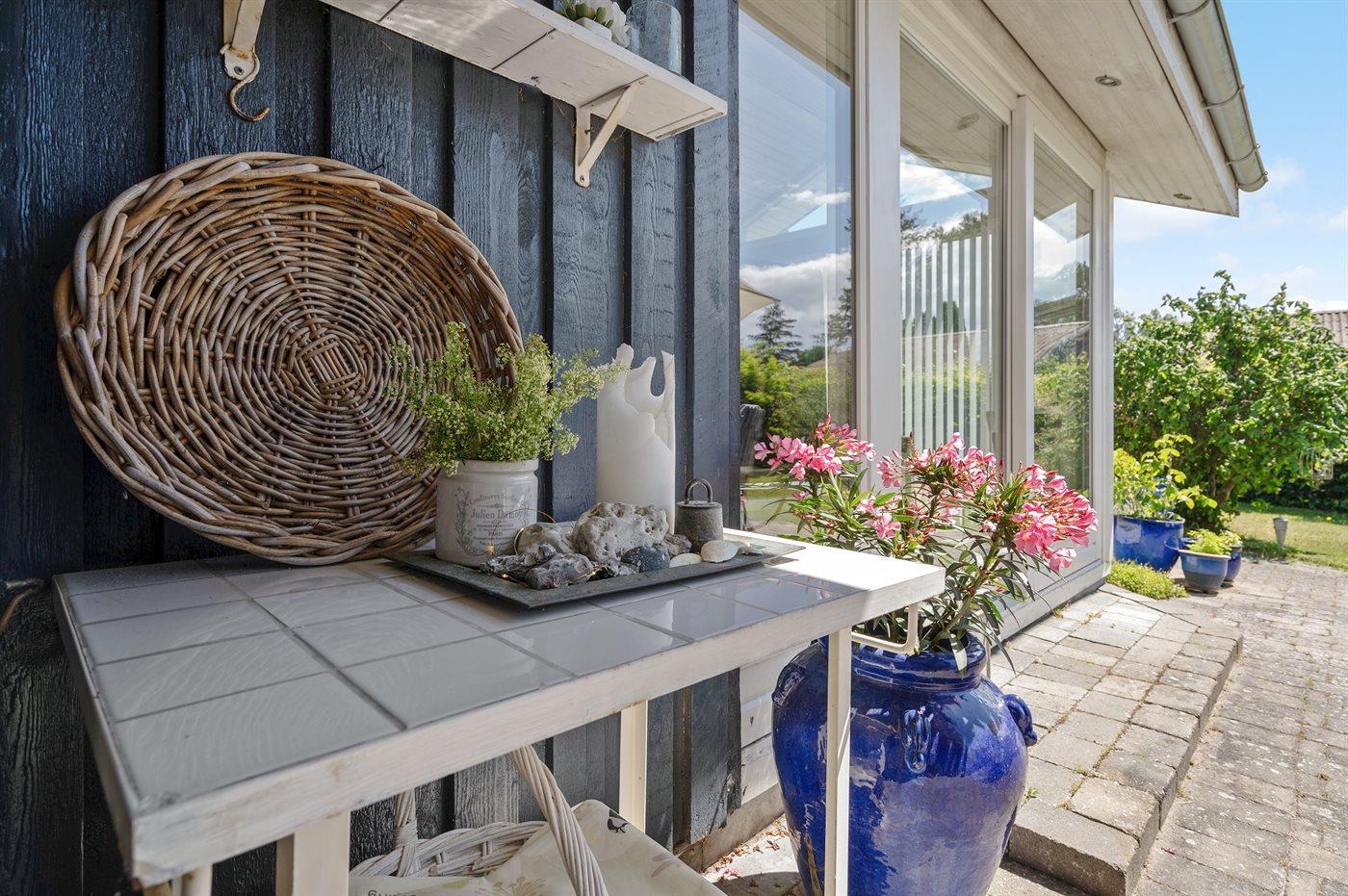 Ferieboligen er beliggende på en 613 m² stor havegrund. Grunden er indhegnet. Der er 150 m til havet. Nærmeste forretning er beliggende i en afstand af 3600 m. Desuden er der 15 m² overdækket terrasse. Til ferieboligen hører åbent terrasseareal. Parkering ved ferieboligen.