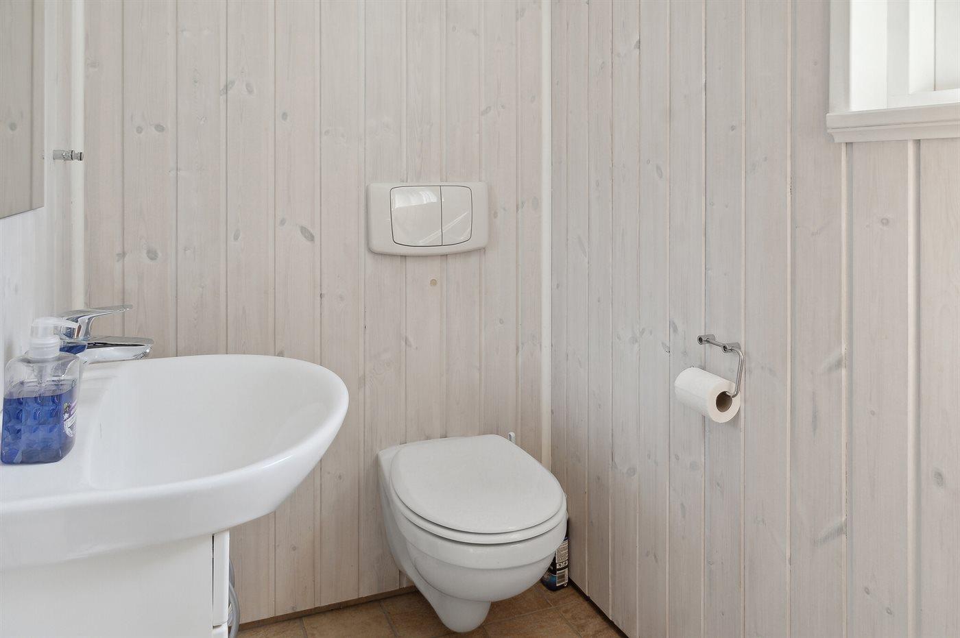 Der er 1 badeværelse med bruseniche og 2 toiletter, heraf 1 gæstetoilet. Der er gulvvarme på 1 badeværelse. Der er gulvvarme på gæstetoilettet.