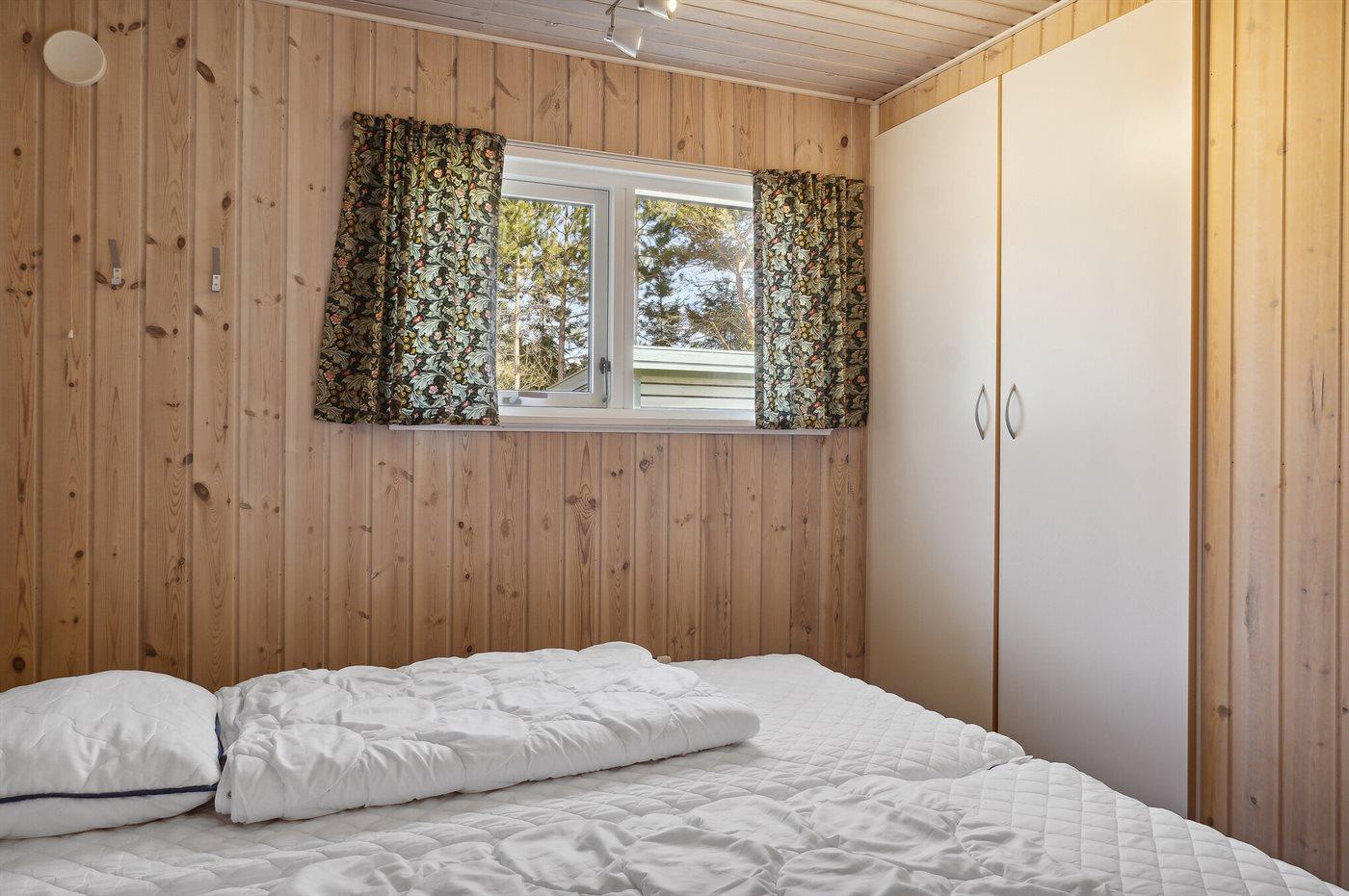 Der er i alt 3 soveværelser. Sovepladserne fordeler sig på: 4 sovepladser i dobbeltsenge. 1 soveplads i enkeltseng.1 soveplads i køjeseng. 2 sovepladser i alkove. Derudover er der 1 stk. barneseng.