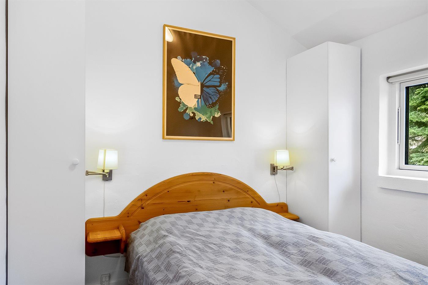 Der er i alt 4 soveværelser. Sovepladserne fordeler sig på: 6 sovepladser i dobbeltsenge. 2 sovepladser i enkeltsenge. 4 sovepladser på madrasser. 4 af disse sovepladser befinder sig på husets hems. Derudover er der 1 stk. barneseng.