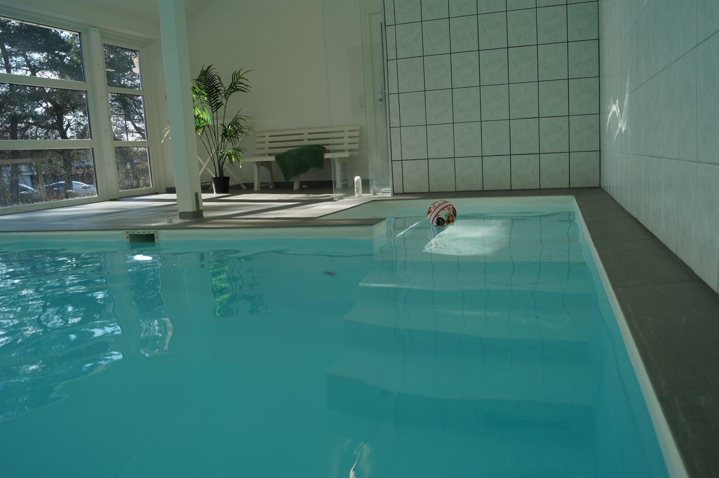 I den indendørs swimmingpool er der mulighed for leg og hyggeligt samvær. Swimmingpoolen måler op til 3,45 m i bredden, 4,8 m i længden og den er op til 1,3 m dyb. Vandet er mellem 24 og 28° C varmt. Til de små er der desuden børnepool. Der er gulvvarme i swimmingpoolområdet.