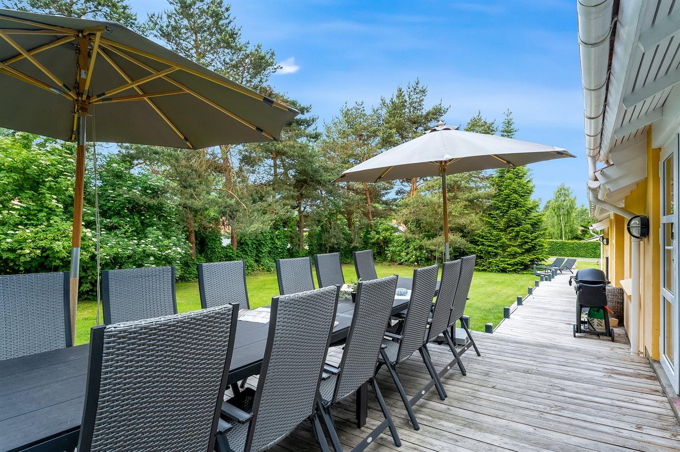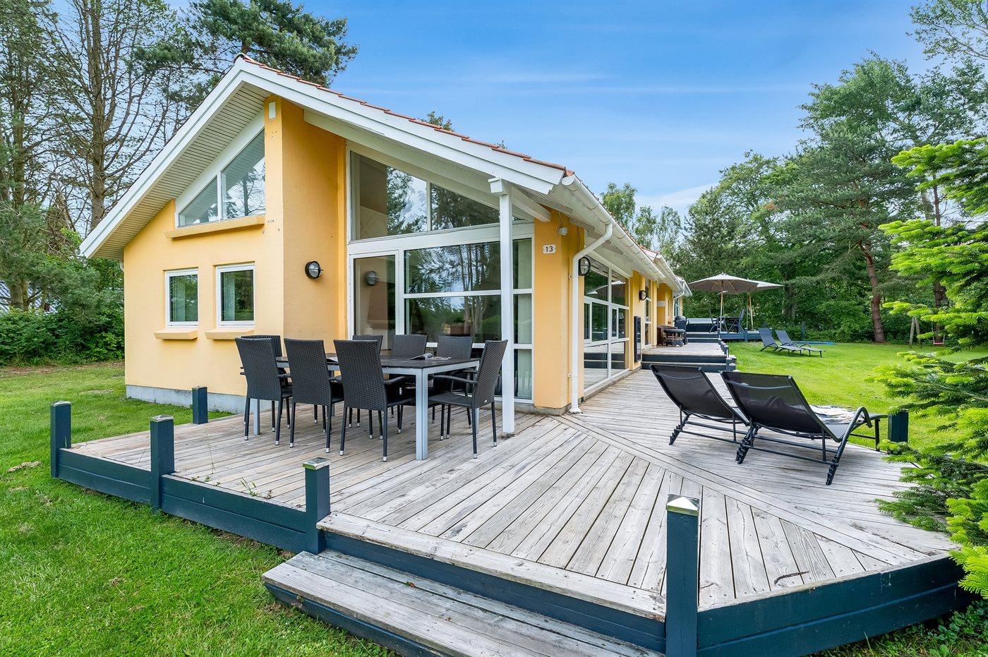 Dette dejlige og lyst indrettede sommerhus ligger på en stor grund i et eftertragtet ferieområde. Til huset hører et dejligt og til dels overdækket terrasseareal, hvor man kan sidde og nyde hyggelige timer i det fri alt imens man kan holde øje med børnene der leger på grunden.