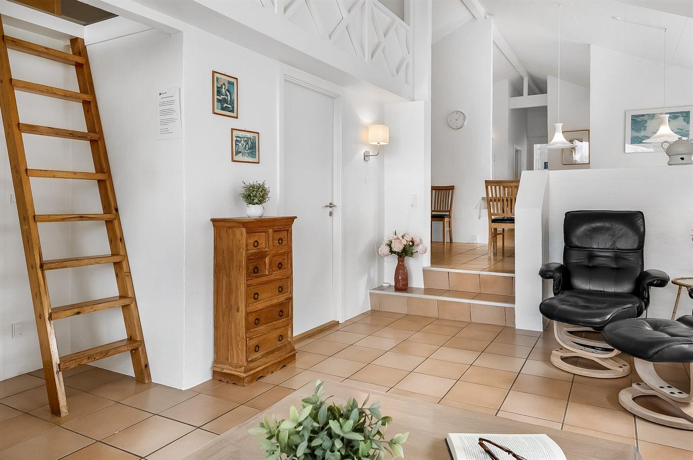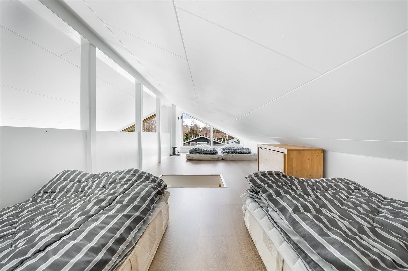 Huset er indrettet med 4 soveværelser samt en stor og lys hems, hvor der findes yderligere 4 sovepladser.
