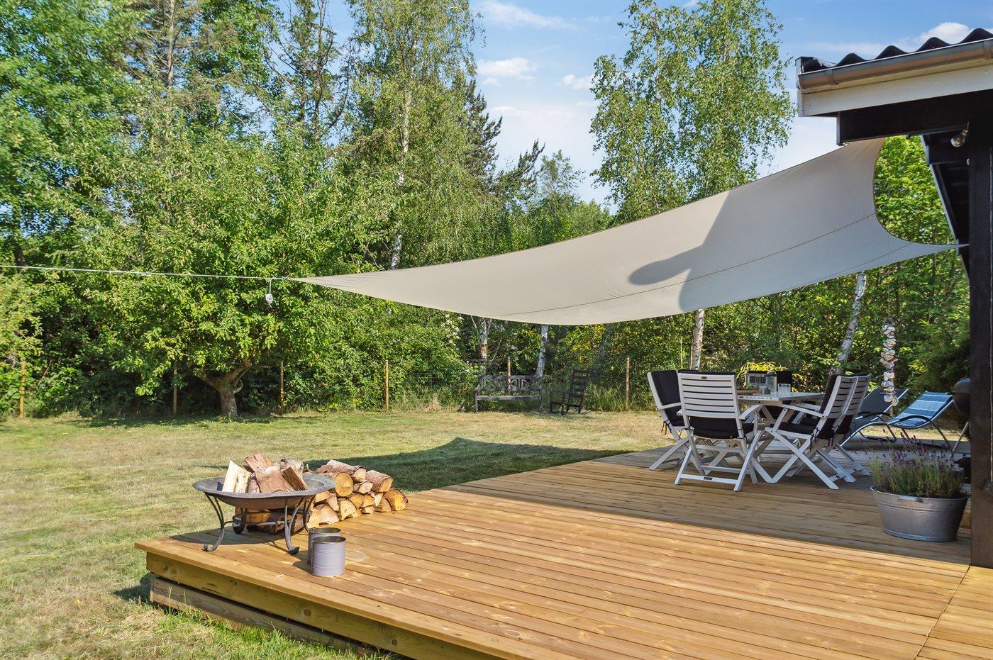 Huset ligger på en over 1200 m2 stor grund, så der er god plads til udendørsaktiviteter for den aktive familie.