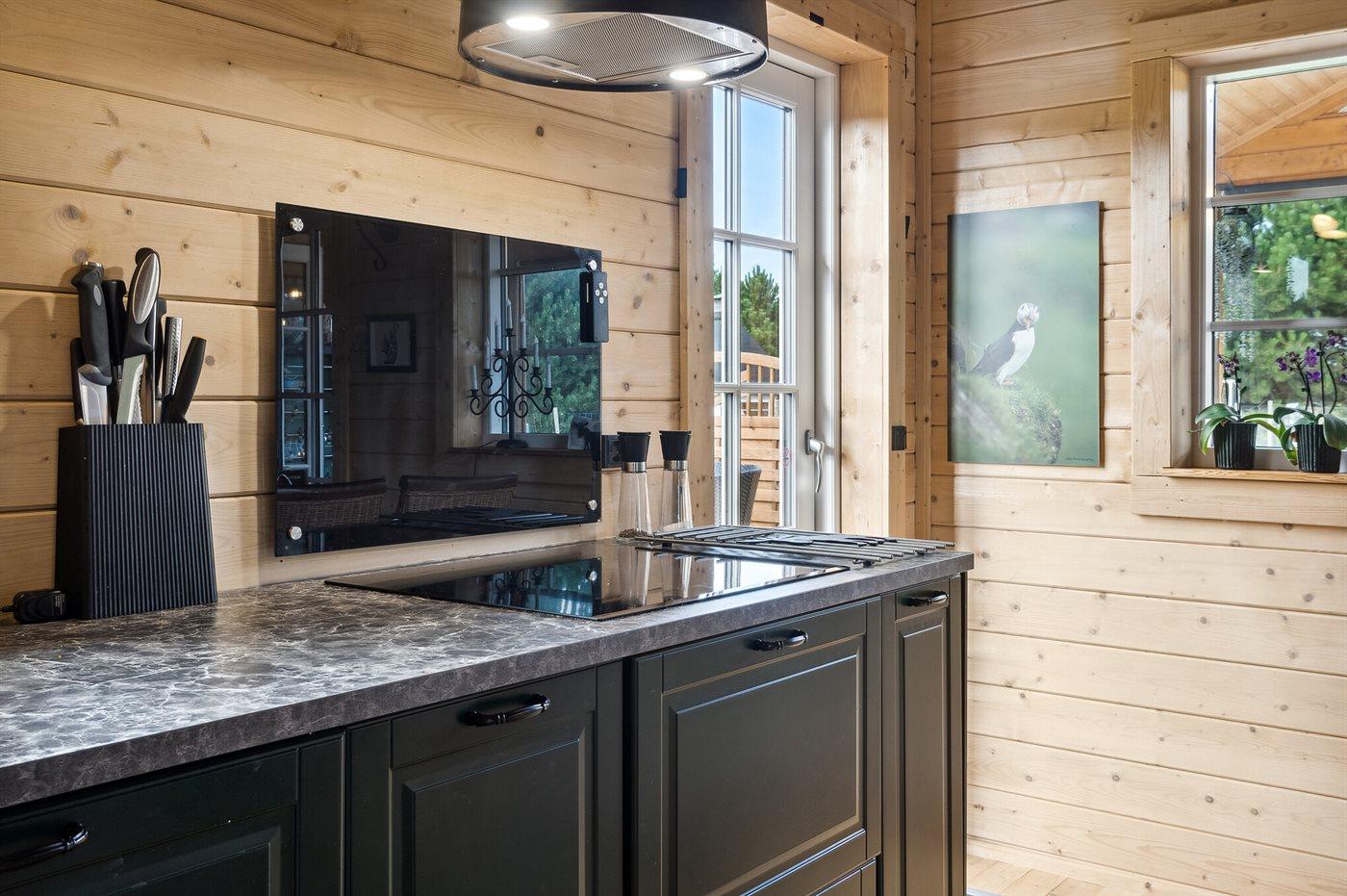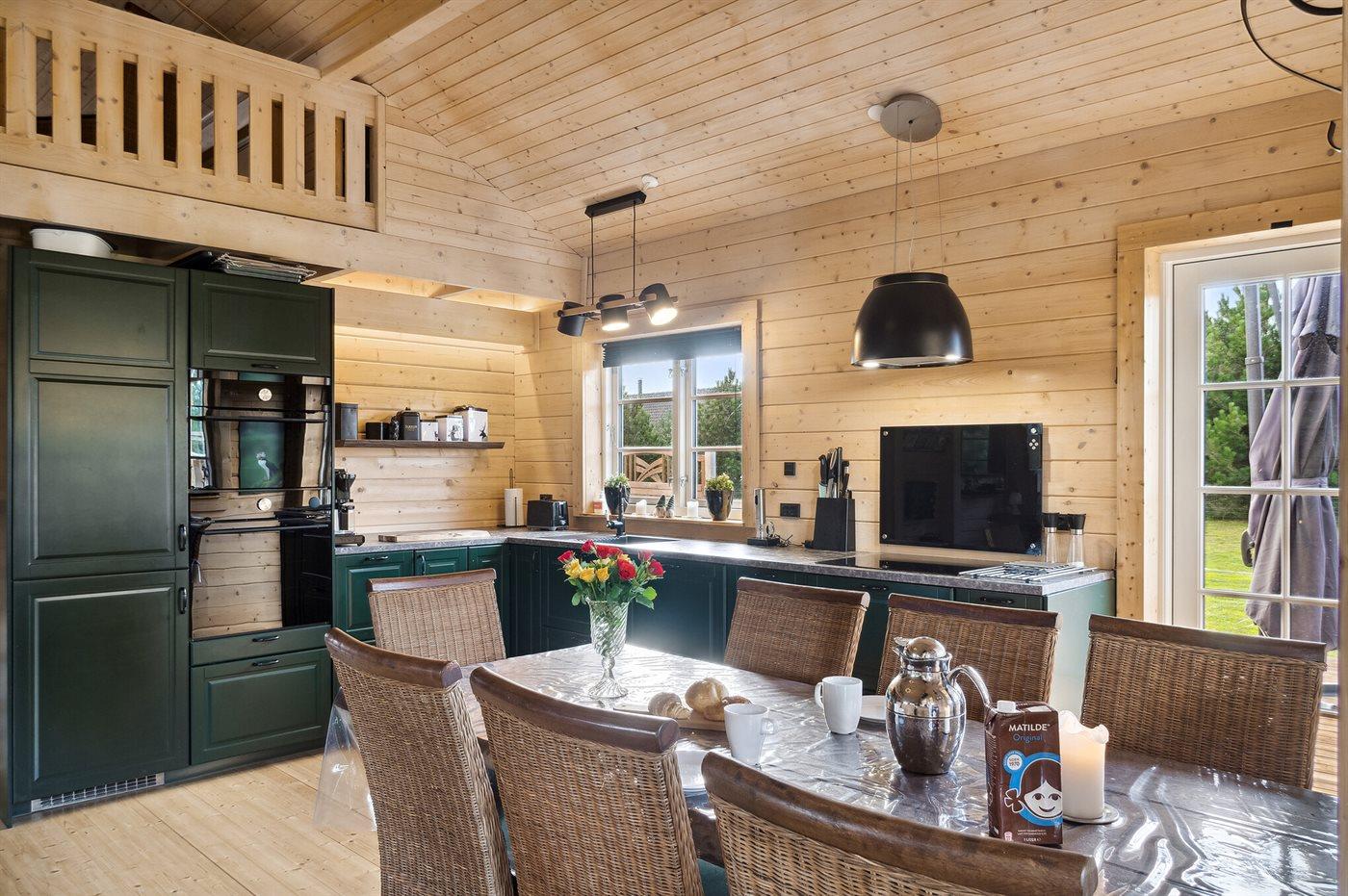 Køkkenet er udstyret med 2 køleskabe. Der er 4 induktionskogeplader, varmluftovn, mikrobølgeovn samt opvaskemaskine.