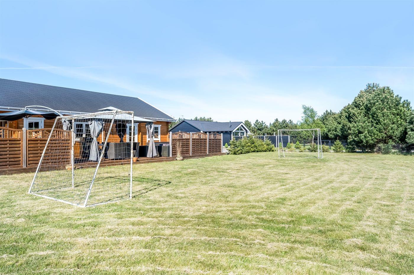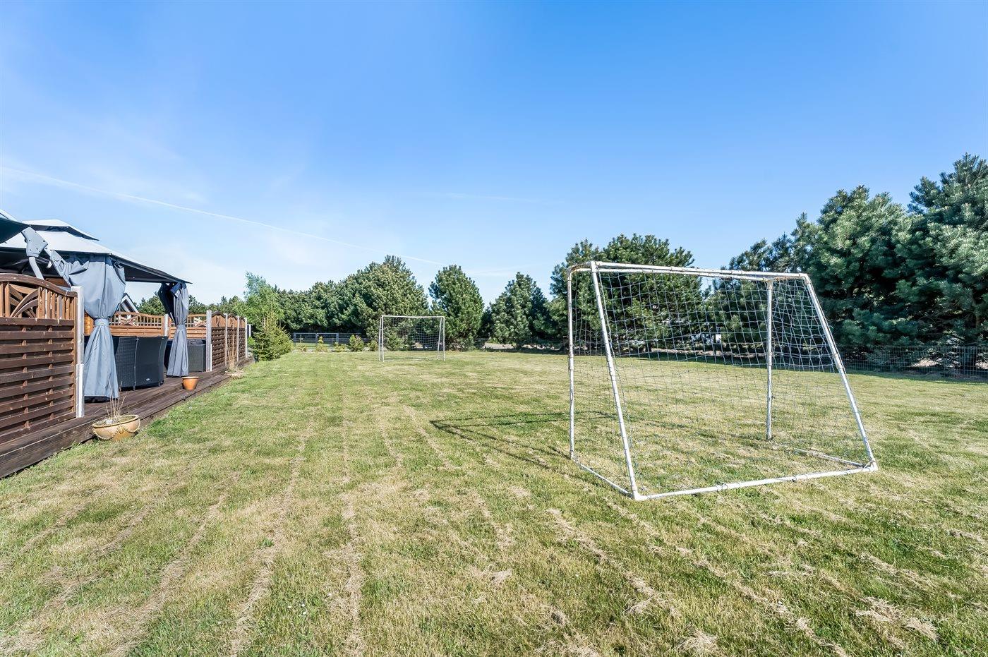 Er man til fodbold, er der mulighed for et spil bordfodbold indendørs, eller man kan benytte de 2 mål i haven.