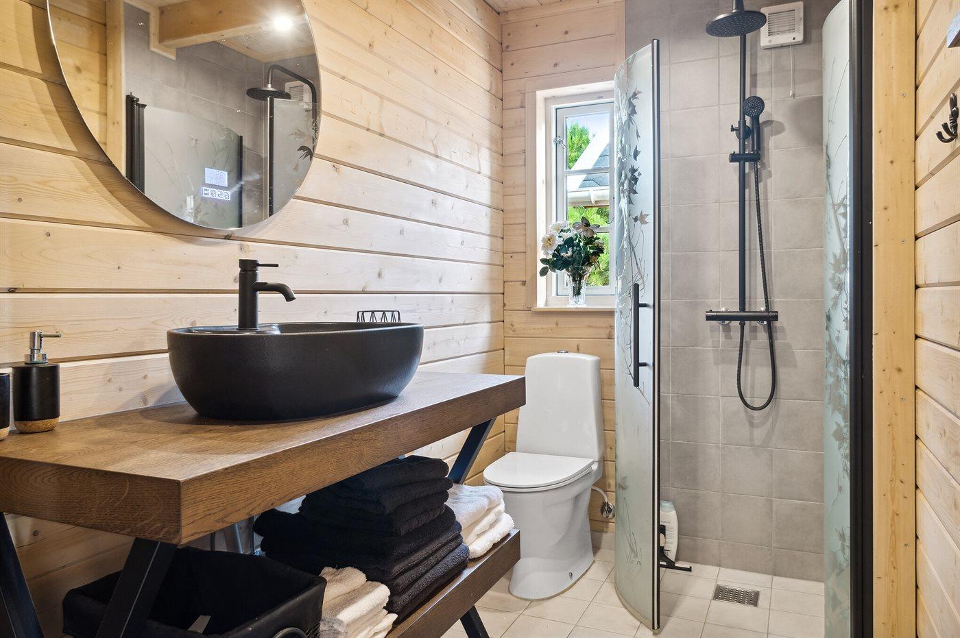 Der er 1 badeværelse med bruseniche og 2 toiletter.