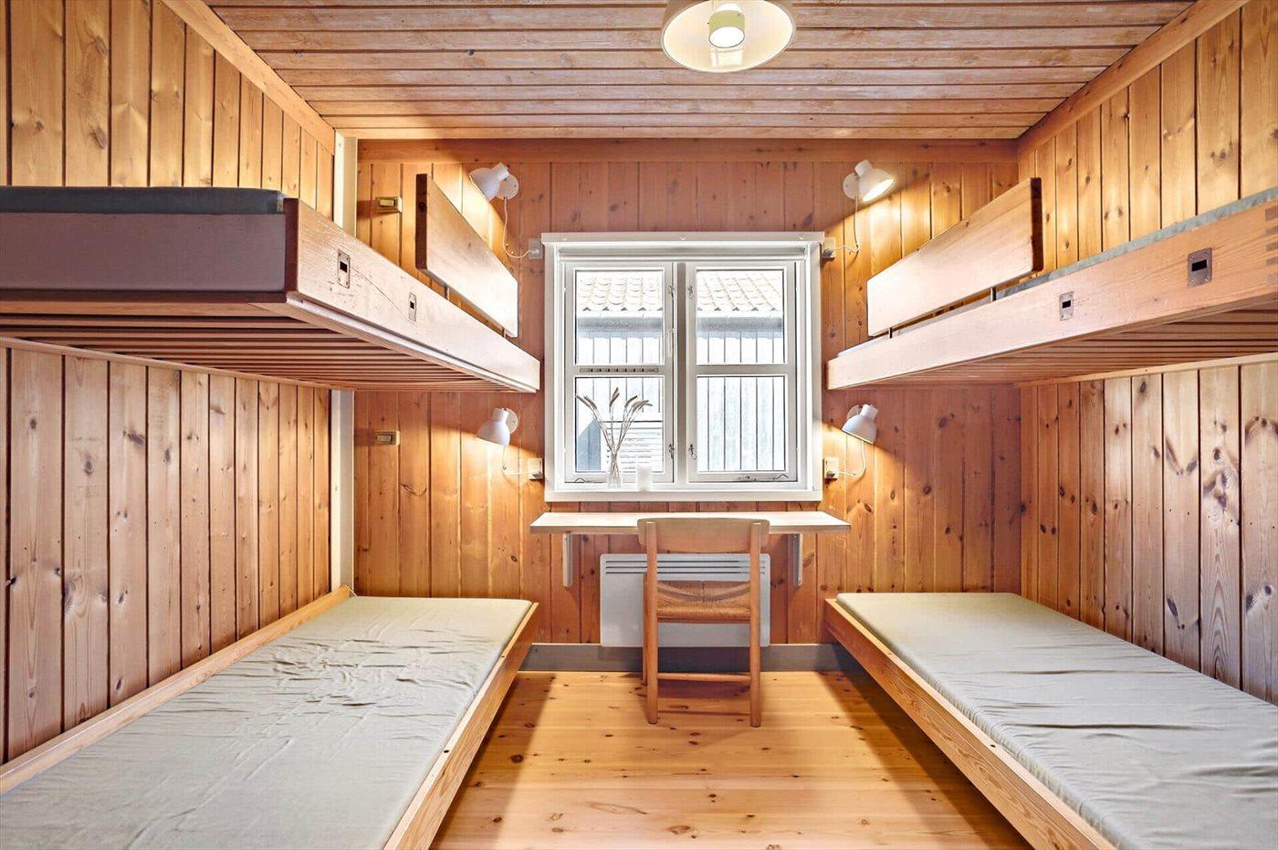 Der er i alt 2 soveværelser. Sovepladserne fordeler sig på: 2 sovepladser i dobbeltseng. 4 sovepladser i enkeltsenge.