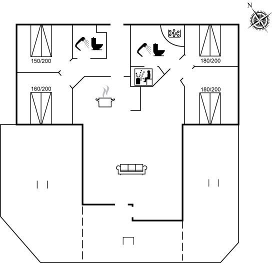 Der er i alt 4 soveværelser. Sovepladserne fordeler sig på: 8 sovepladser i dobbeltsenge. Derudover er der 1 stk. barneseng.
