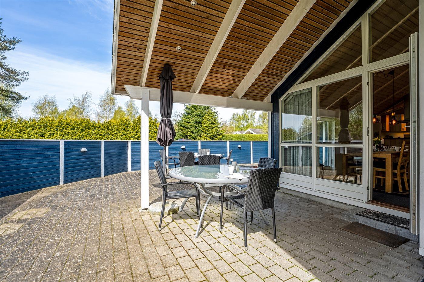 Ferieboligen er beliggende på en 918 m² stor havegrund. Der er 800 m til havet. Nærmeste forretning er beliggende i en afstand af 500 m. Til ferieboligen hører 60 m² terrasseareal. Desuden er der 10 m² overdækket terrasse. Heraf i alt 70 m² lukket terrasse. Gynge. Sandkasse. Parkering ved ferieboligen.
