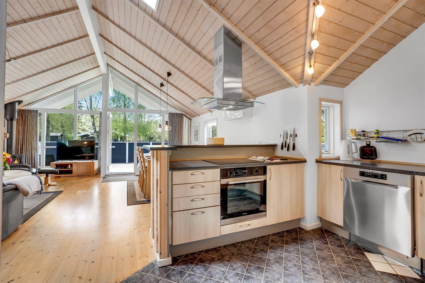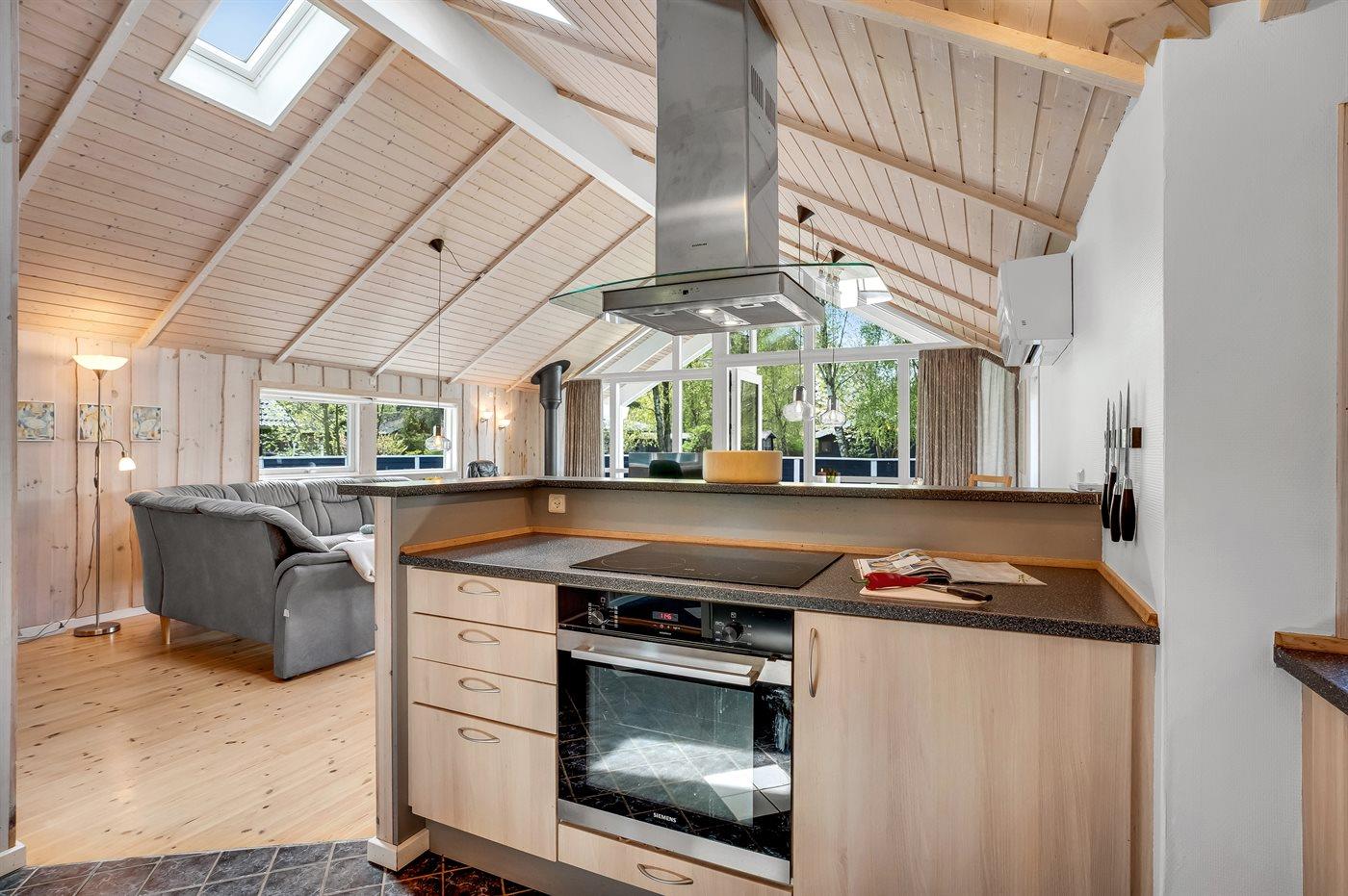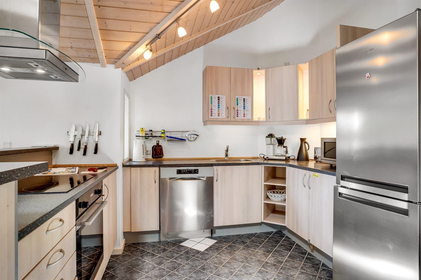 Køkkenet er udstyret med 1 køleskab. Der er 4 keramiske kogeplader, varmluftovn, mikrobølgeovn samt opvaskemaskine.