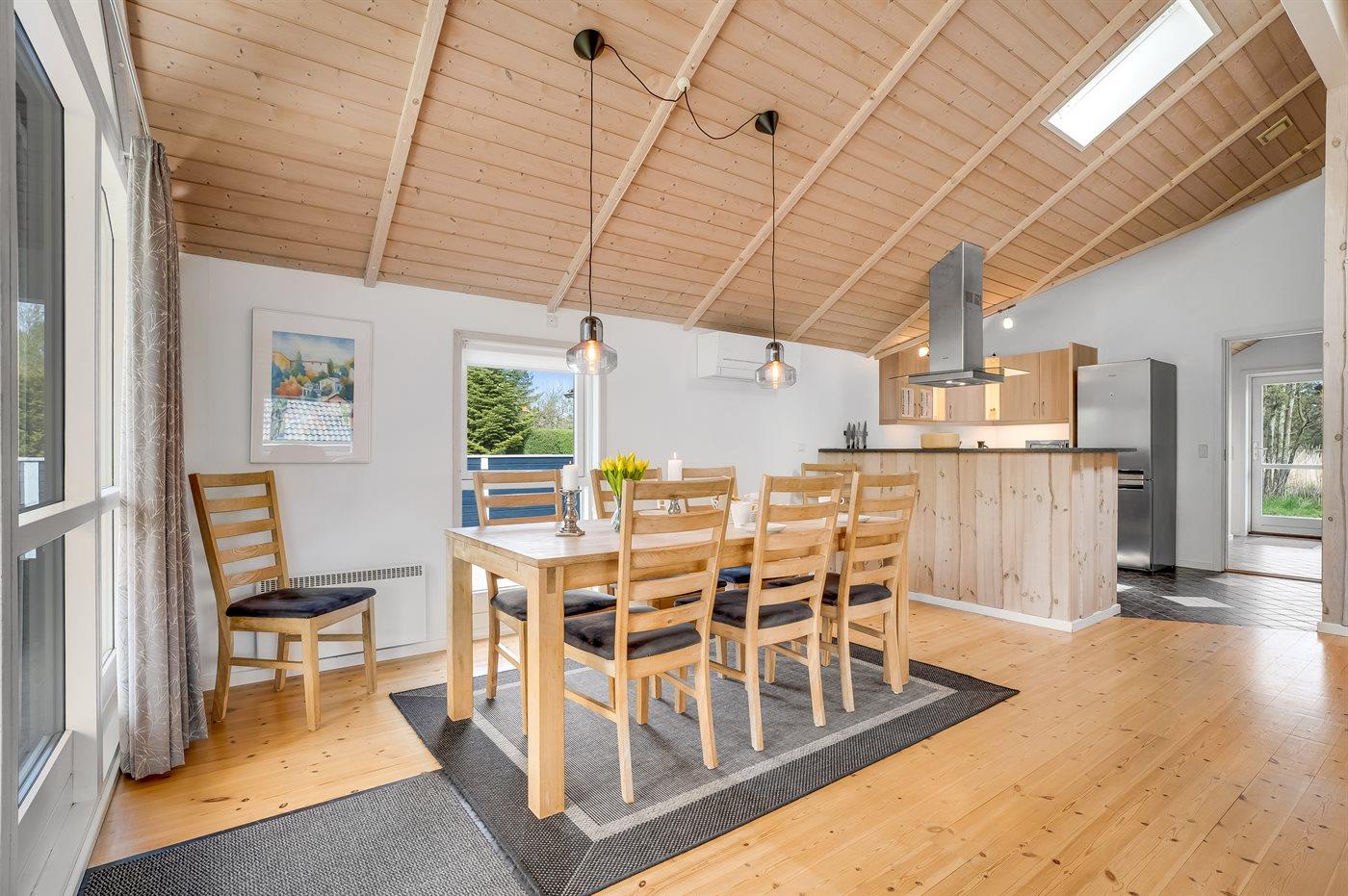Sommerhuset egner sig til 8 personer samt 1 barn op til 3 år. Ferieboligen er på 118 m² og er bygget i 2007. Det er tilladt at medbringe 2 husdyr. Ferieboligen er udstyret med energibesparende varmepumpe. Der er gulvvarme i gangen. Ferieboligen har vaskemaskine. Tørretumbler. Frysekapacitet på 100 liter. Der er desuden brændeovn. Til de små er der 1 stk. barnestol.