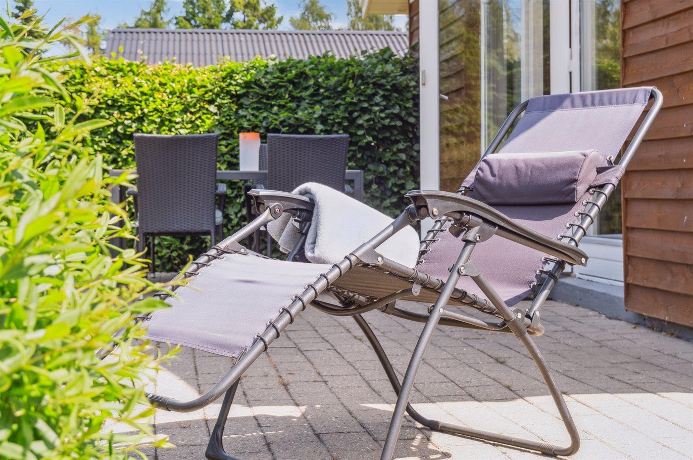Ferieboligen er beliggende på en 1000 m² stor havegrund. Der er 1000 m til havet. Nærmeste forretning er beliggende i en afstand af 750 m. Til ferieboligen hører 40 m² terrasseareal. Desuden er der 15 m² overdækket terrasse. Sandkasse. Grill til rådighed. Parkering ved ferieboligen.