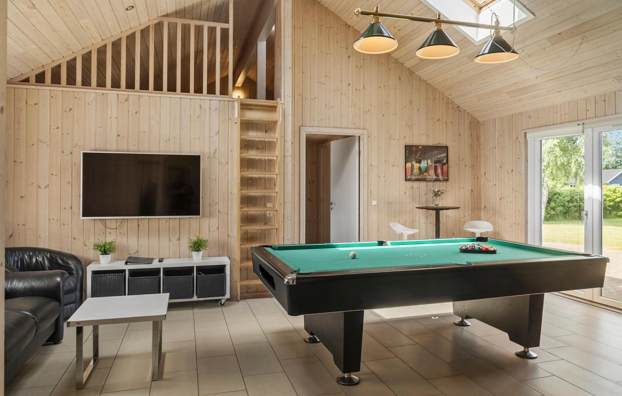 Velkommen til de moderne, stilrene rammer i dette klassiske, indbydende sommerhus. Ovenlysvinduerne lukker masser af naturligt lys ind, hvilket gør det åbne køkken lyst og indbydende. Efter dagens udflugter kan I sætte jer til rette foran tv'et eller lave mad sammen i det åbne køkken. Hvis I trænger til at gøre noget aktivt, så hop en tur i poolen eller snup et spil billard.